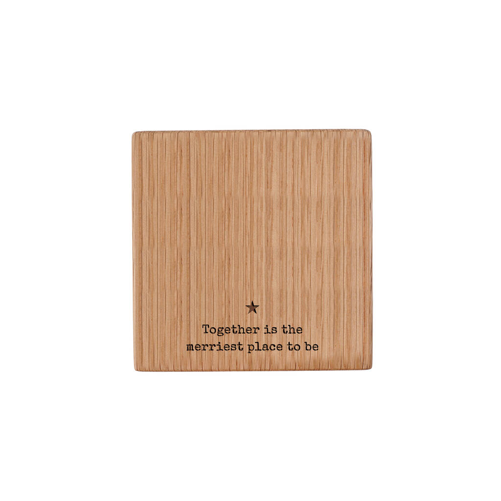 Square Oak Coaster | 'Together Is The Merriest Place To Be' | Christmas Table Decor | Festive Drink Coaster | Seasonal Design | Ideal Gift