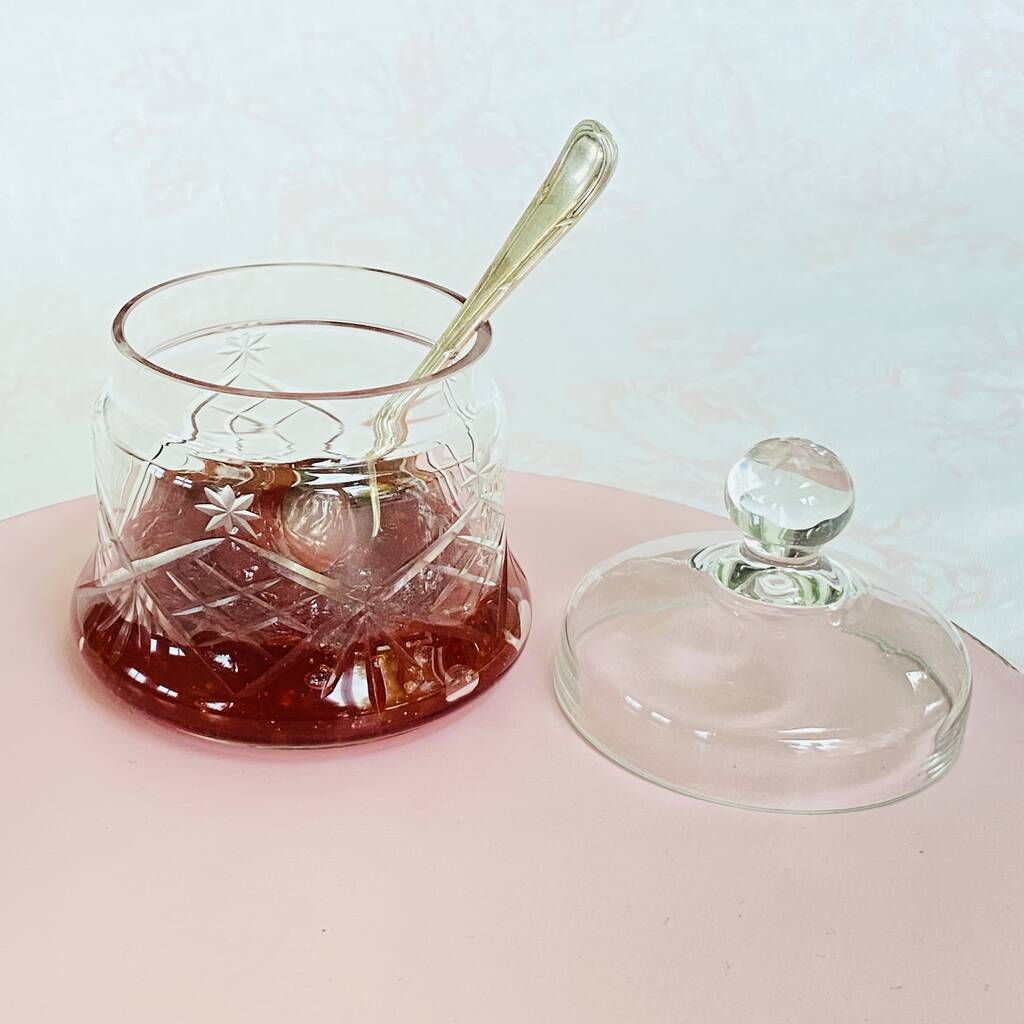 Antique Crystal Cut Glass Lidded Jam / Preserve Pot ~ Three