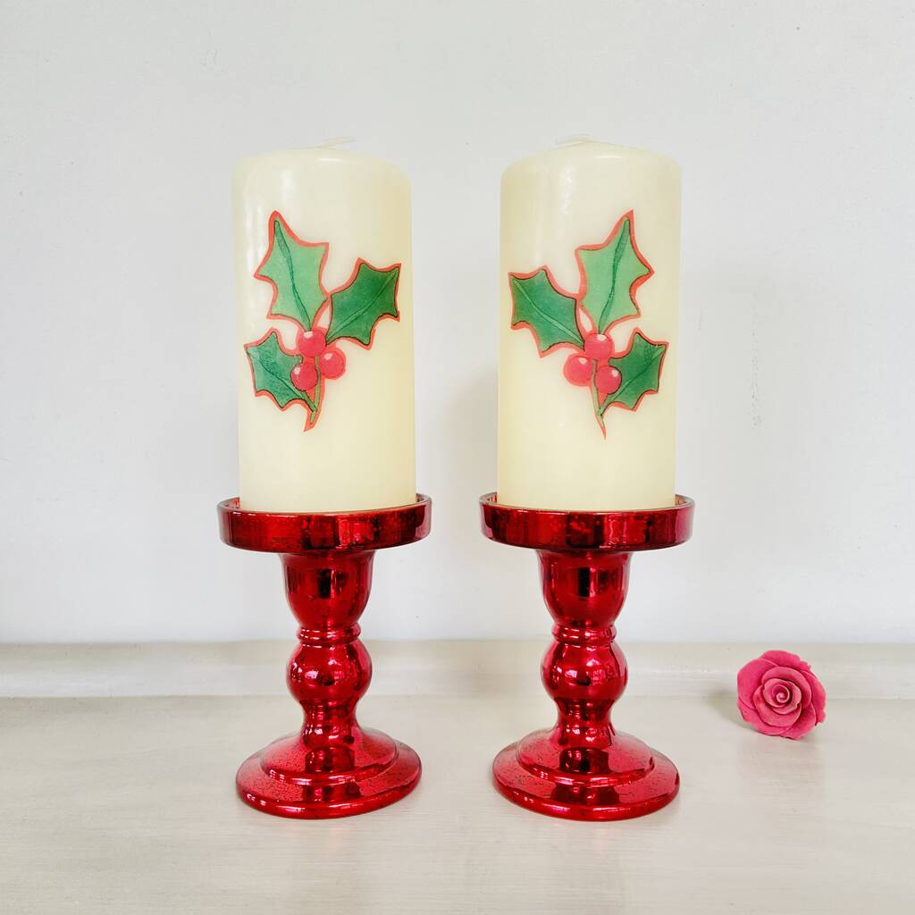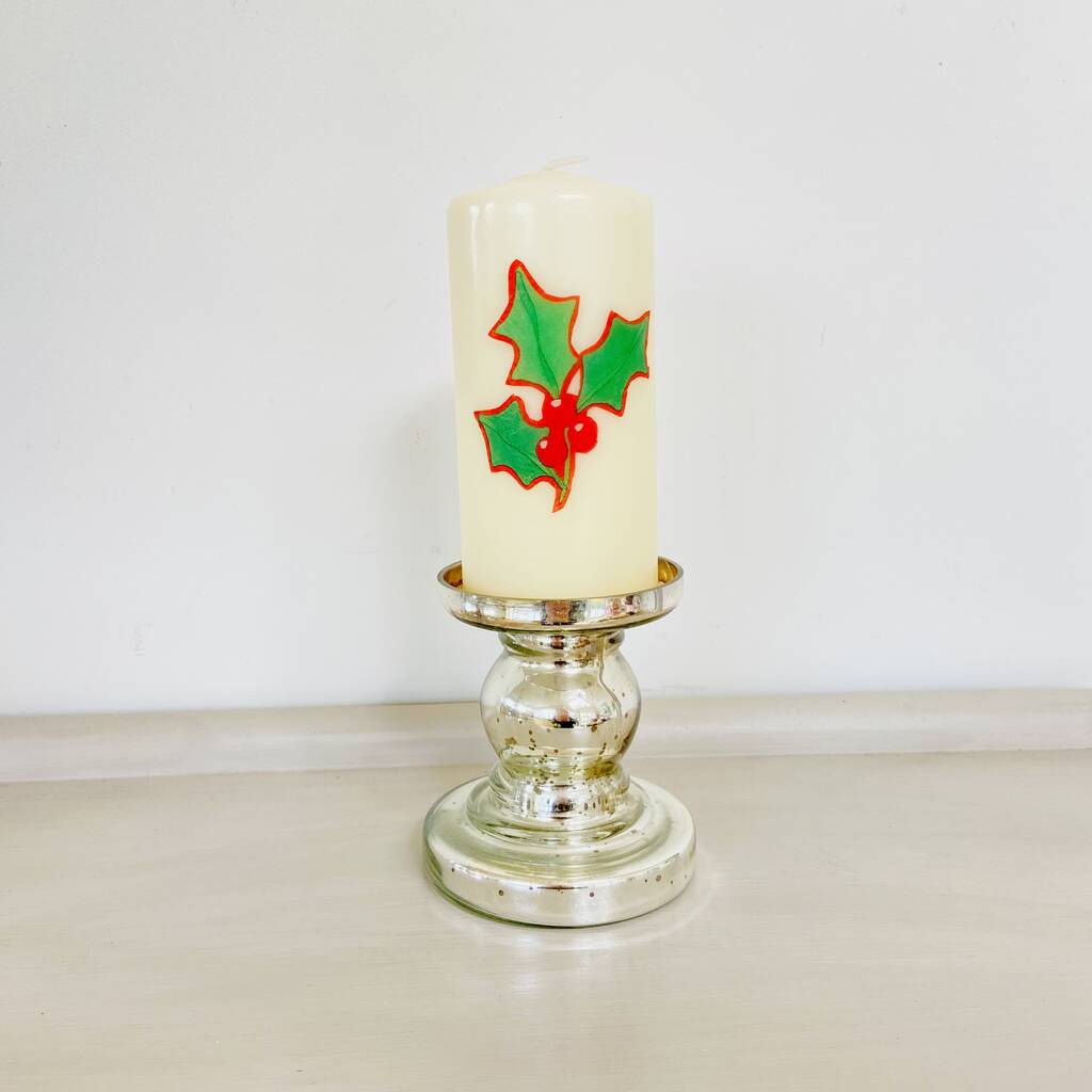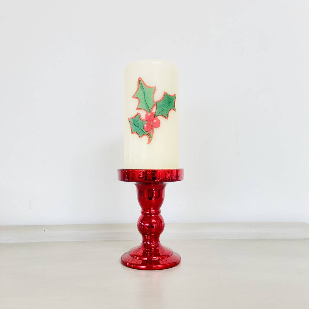 Christmas Holly Pillar Candle