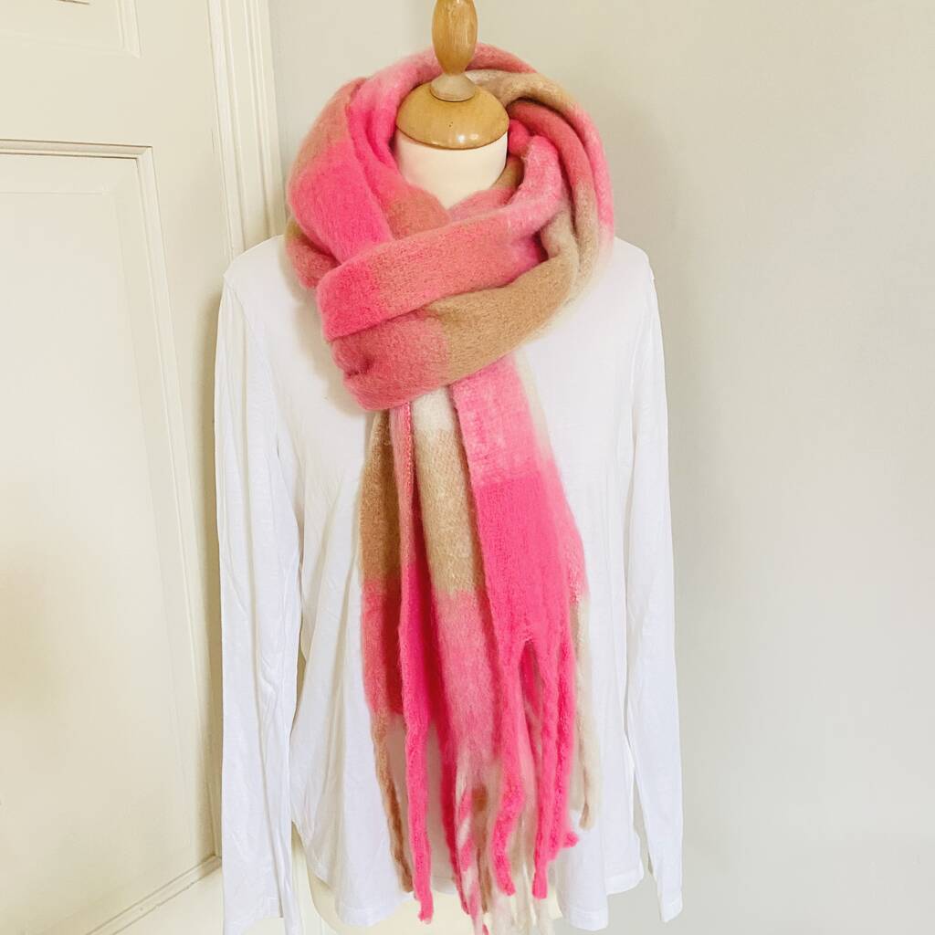 Pink, Cream And Taupe Super Soft Fluffy Winter Scarf With Tassels, 1 of 4