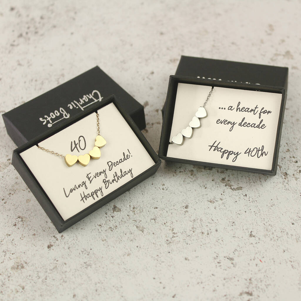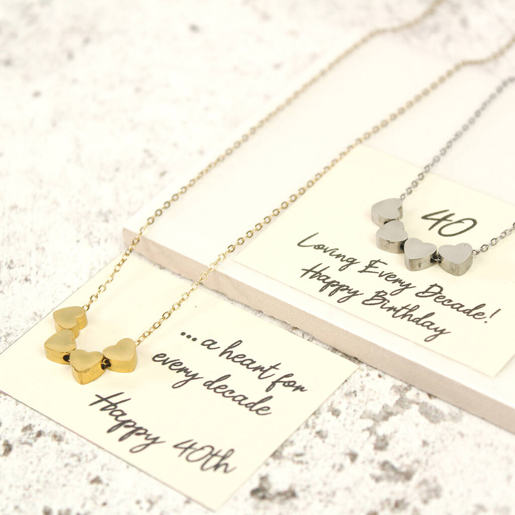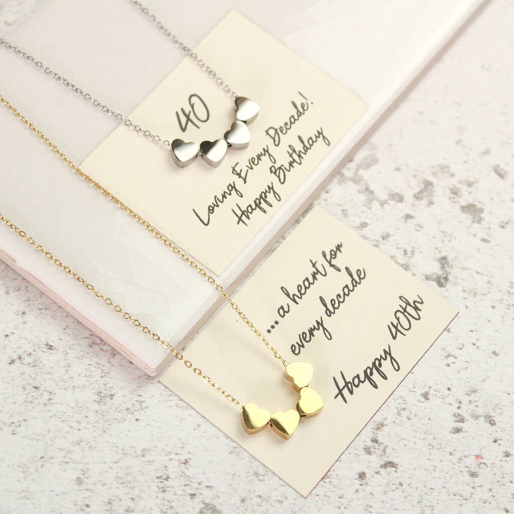 40th Birthday Hearts Necklace, A Heart For Every Decade