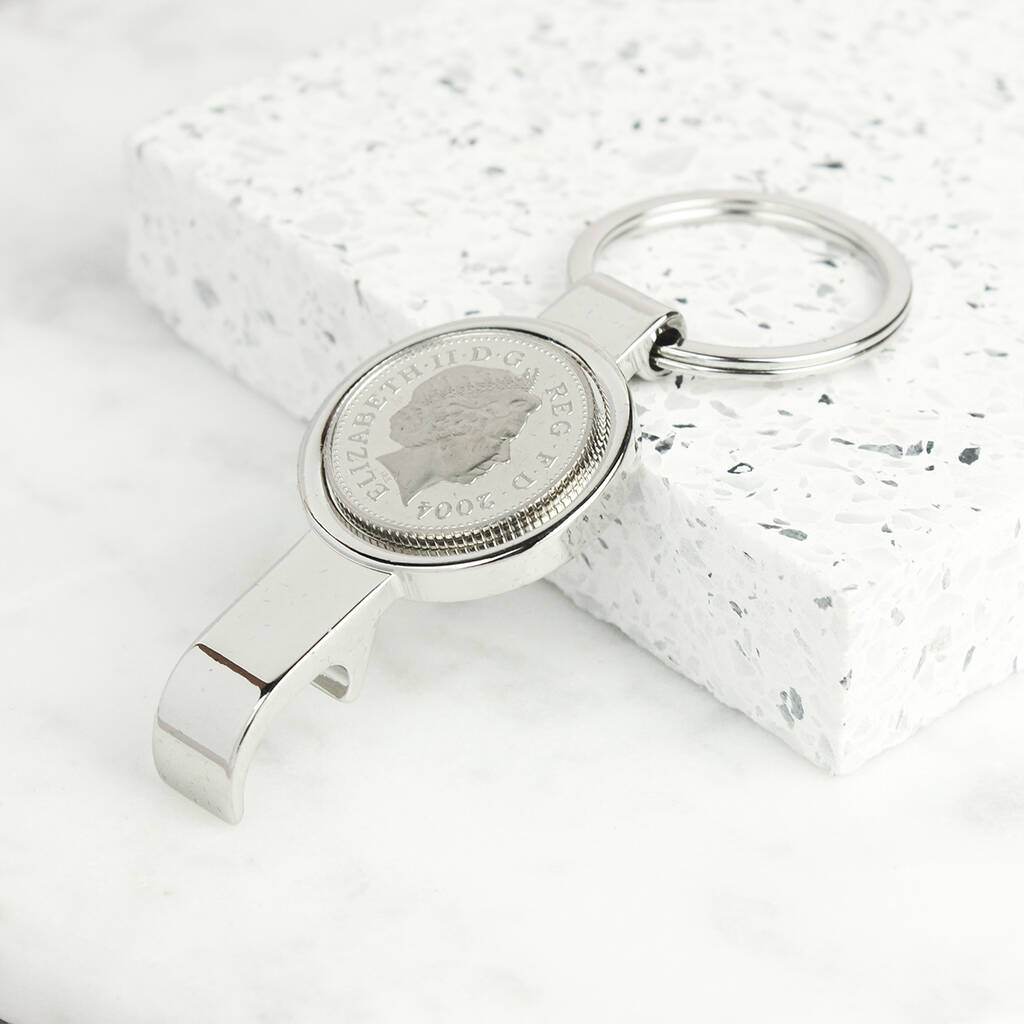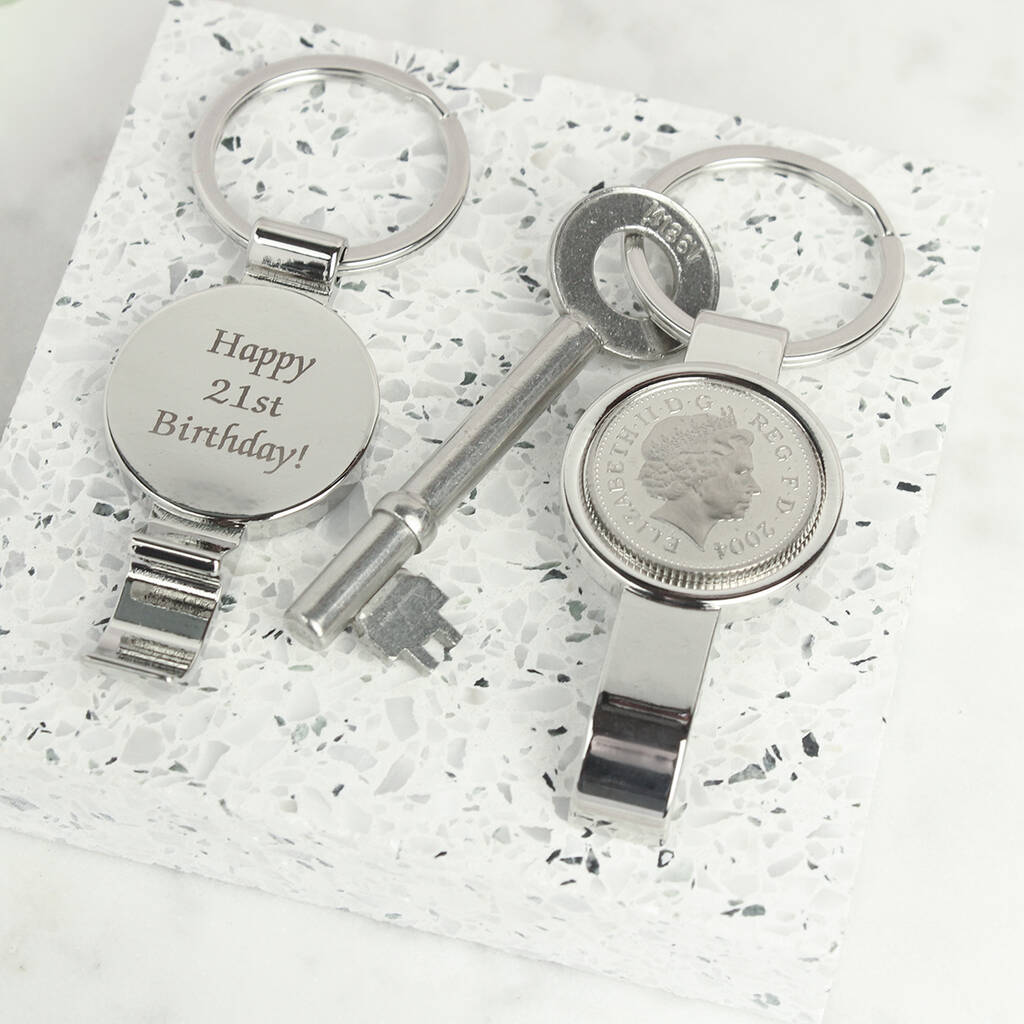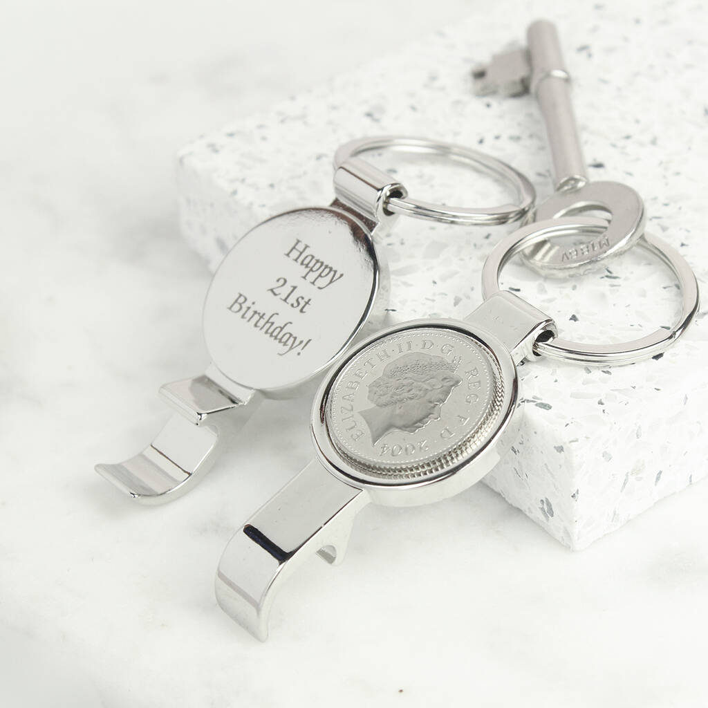 Personalised 21st Birthday Ten Pence Keyring Bottle Opener