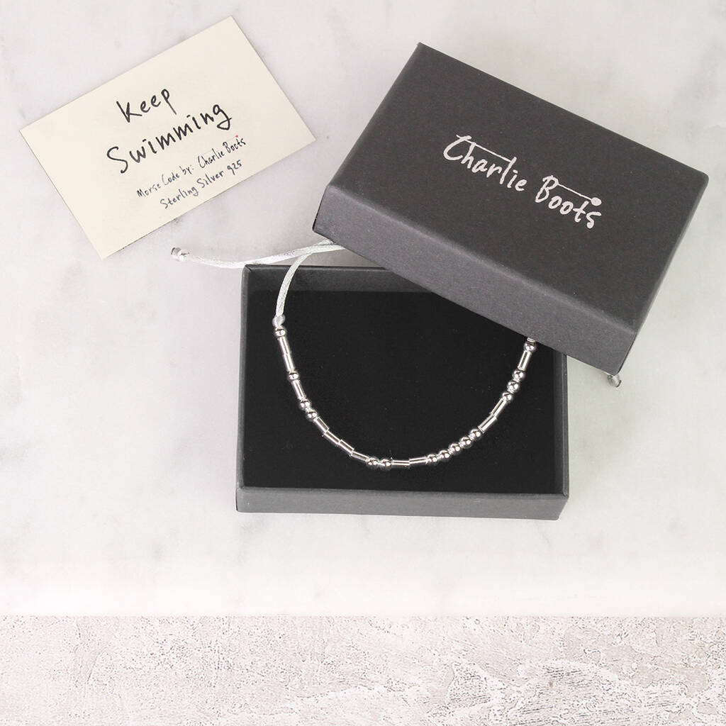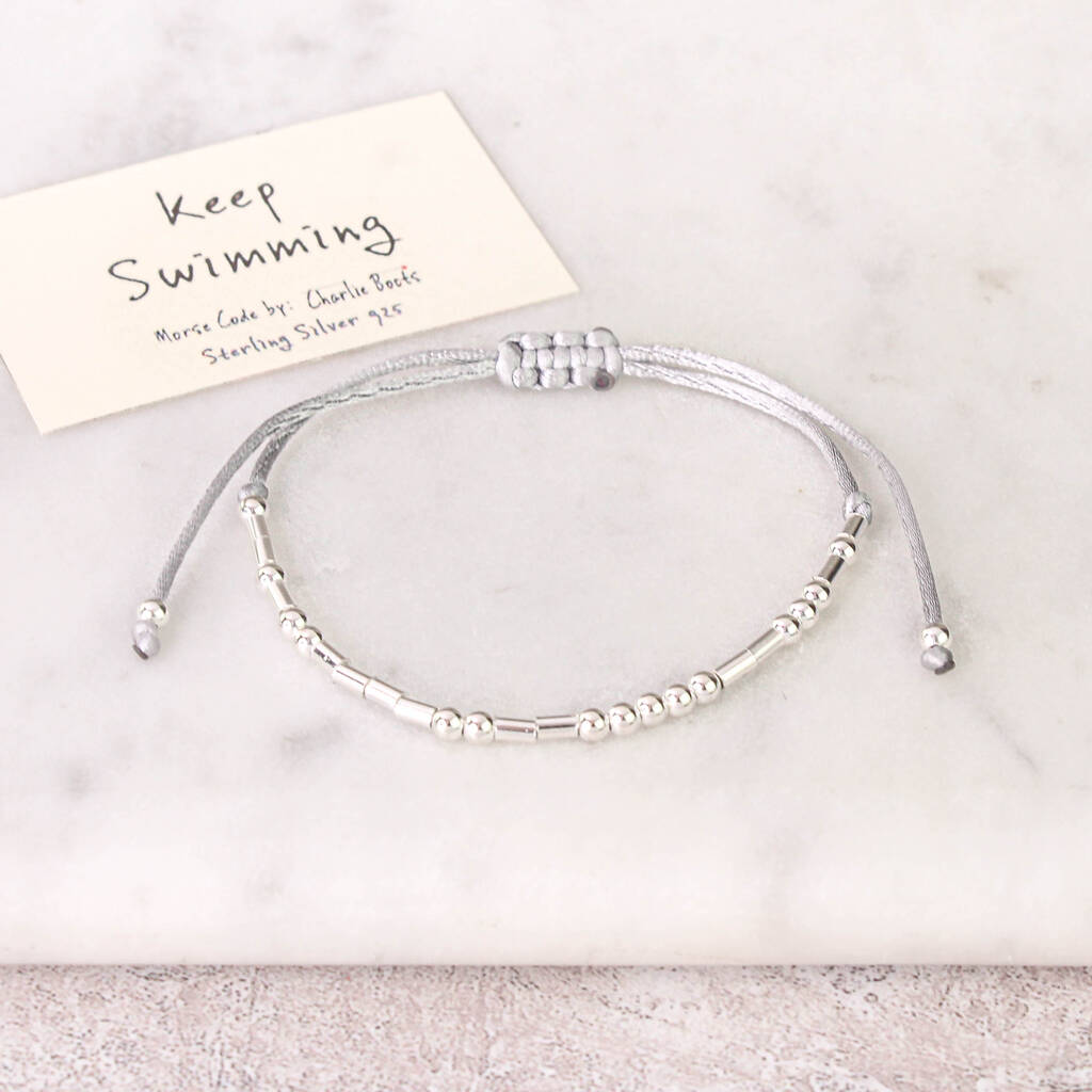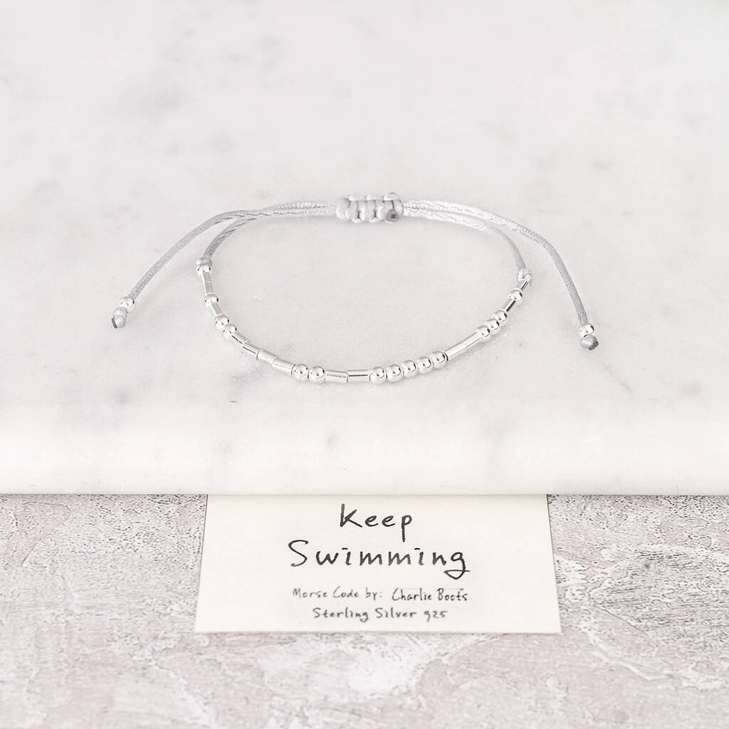 Sterling Silver 925 'Keep Swimming' Morse Code Bracelet, 1 of 6