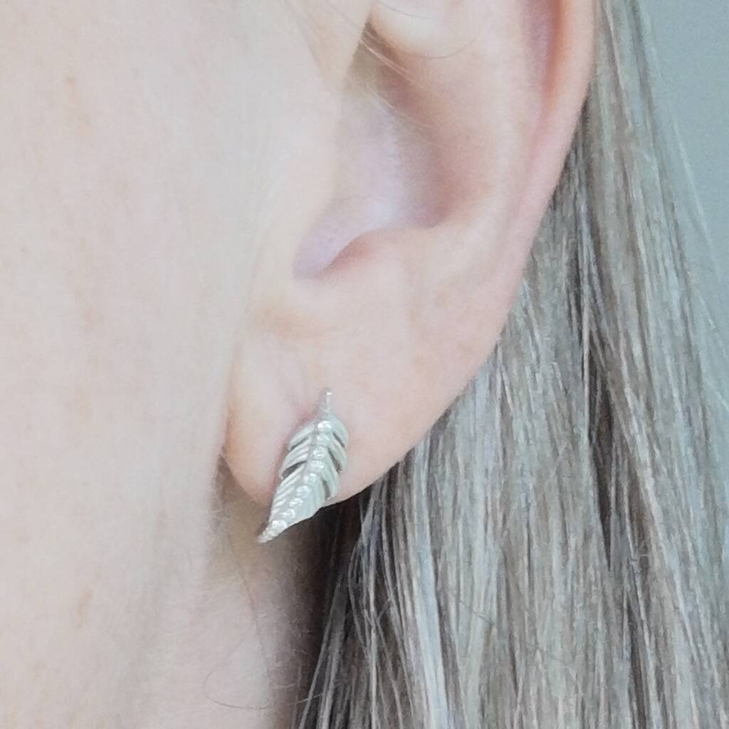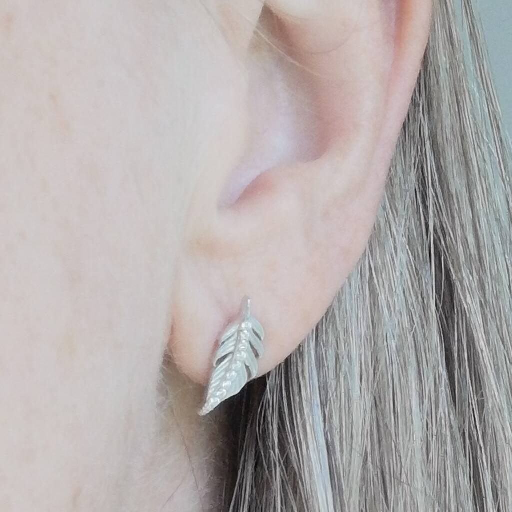 A pair of sterling silver and cubic zirconia Feather ear studs on a card of your choice.