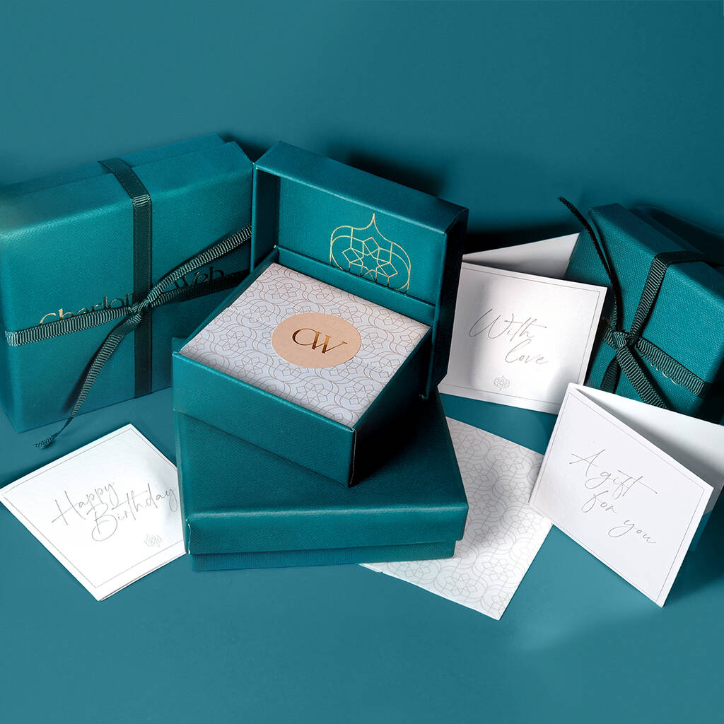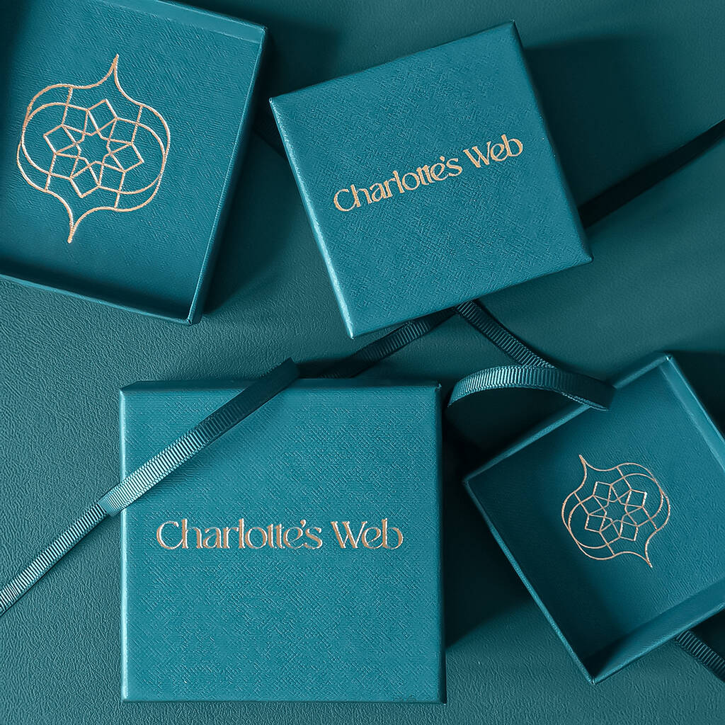Your Charlotte's Web jewellery will come lovingly presented in a branded gift box. You can opt for a ribbon tied gift box, or our luxury gift wrapping, please select options from the drop down menu.