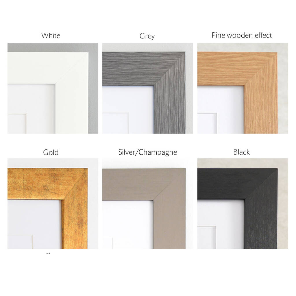 * Framed & Mounted Prints: Printed onto high quality photo satin paper. This is then professionally mounted onto thick card to prevent the print buckling in the frame. A white mount is added on top to finish off the artwork beautifully. Our frames come with clear acrylic, not glass, to prevent damage in transit. Frame is 5.2cm wide and the inner white mount is 7cm wide on all sides. Wall fixings are supplied.