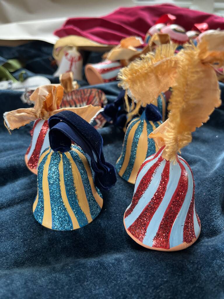 • Blue And Red Striped Painted Bell Bauble, thumbnail 6 of 11
