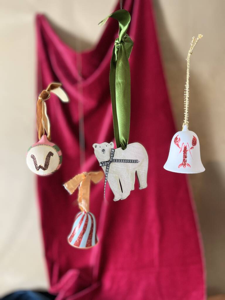 • Blue And Red Striped Painted Bell Bauble, thumbnail 7 of 11