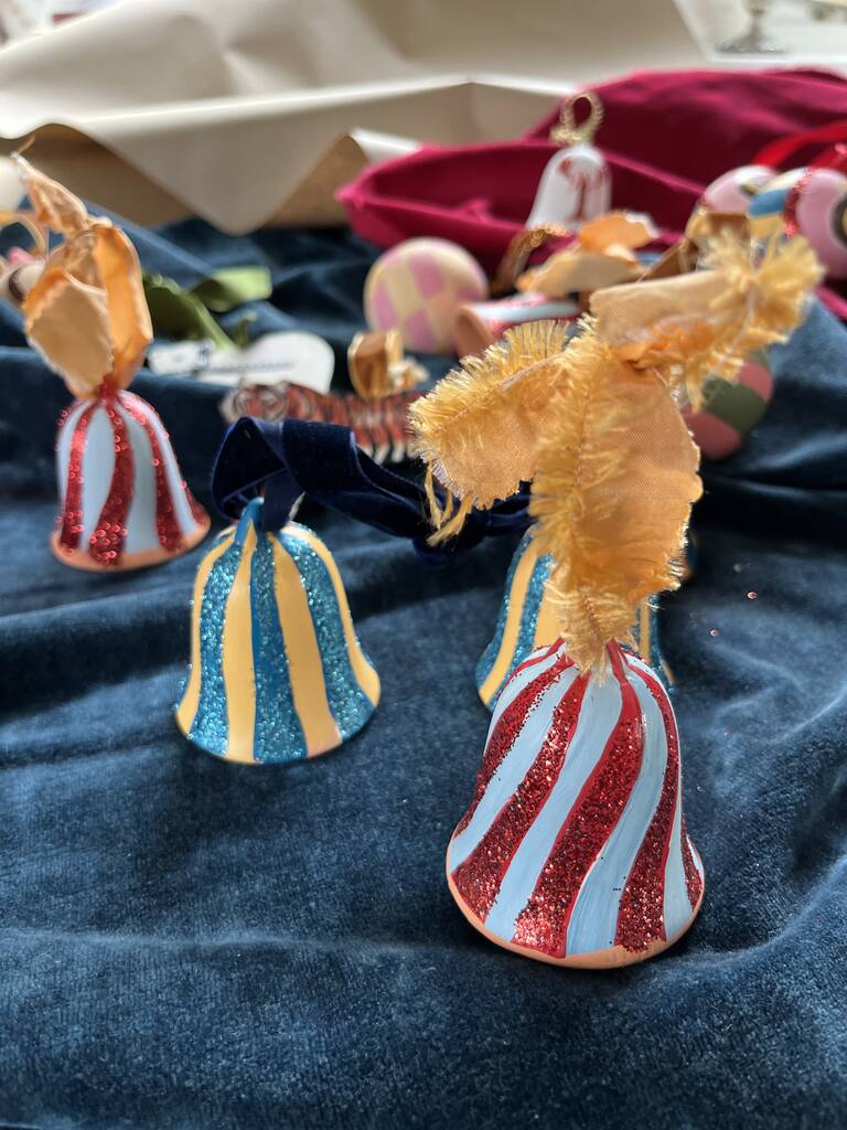 • Blue And Red Striped Painted Bell Bauble, thumbnail 10 of 11