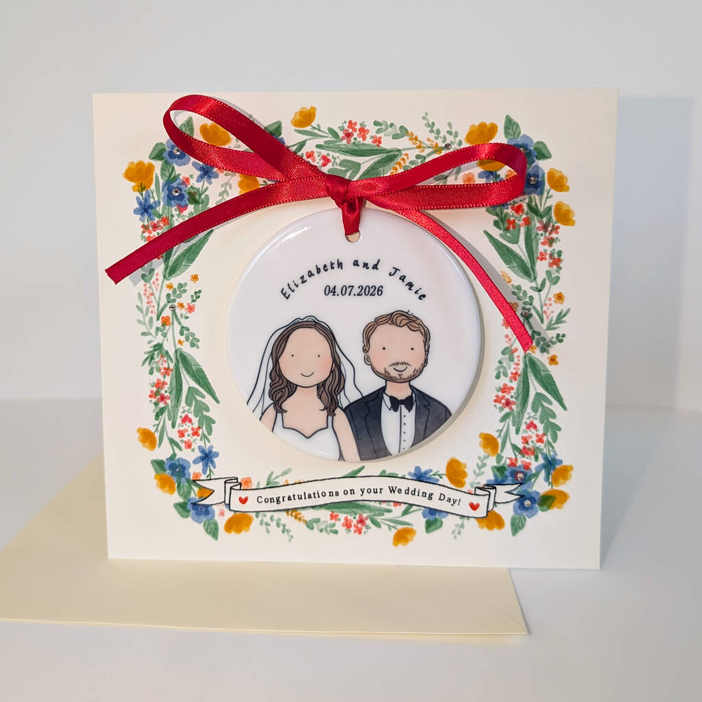 Personalised Wedding Card With Ceramic Portrait Keepsake