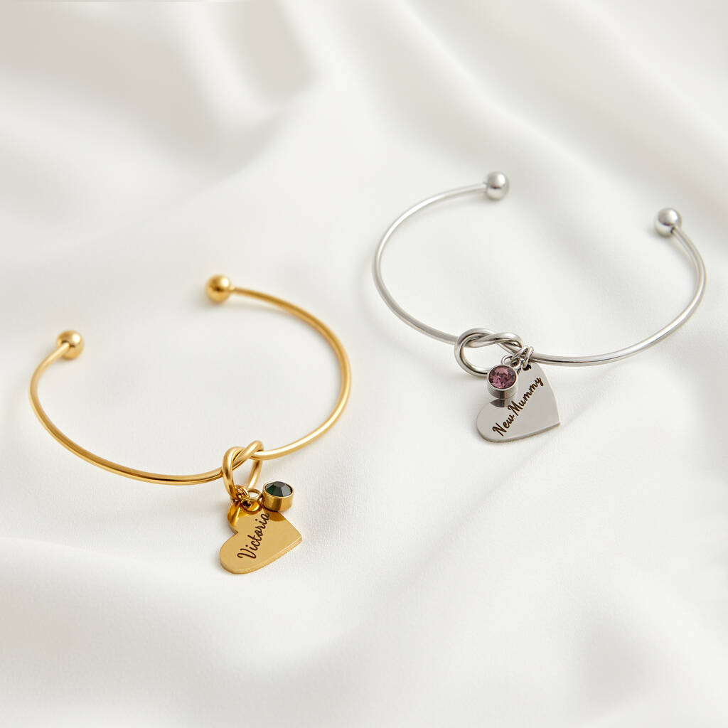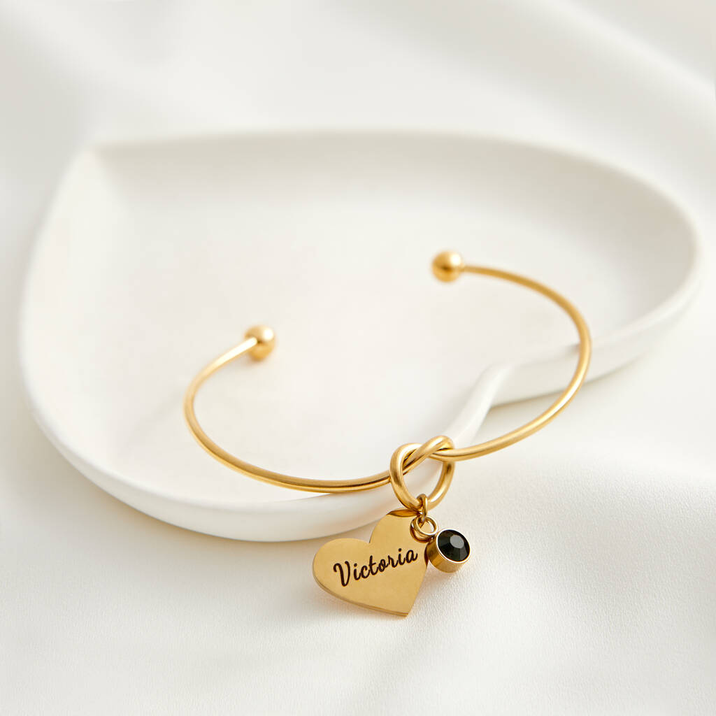 Personalised Heart Knot Gemstone Bangle Gift