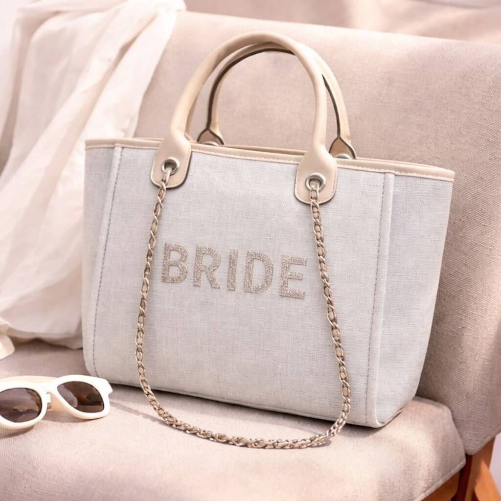 Sparkly Block Letters Bride Stone Large Chain Initial Tote Bags