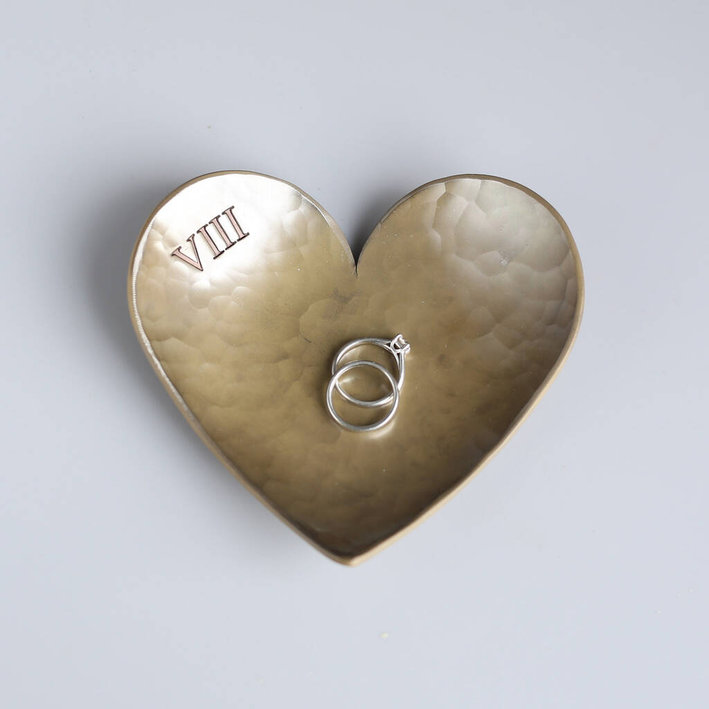 8th Anniversary Gift Bronze Heart Dish. Choice Of Design