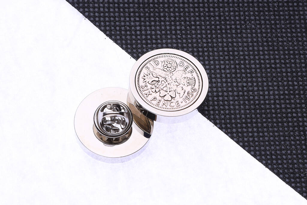 1956 70th Birthday Lucky Sixpence Coin Pin Badge