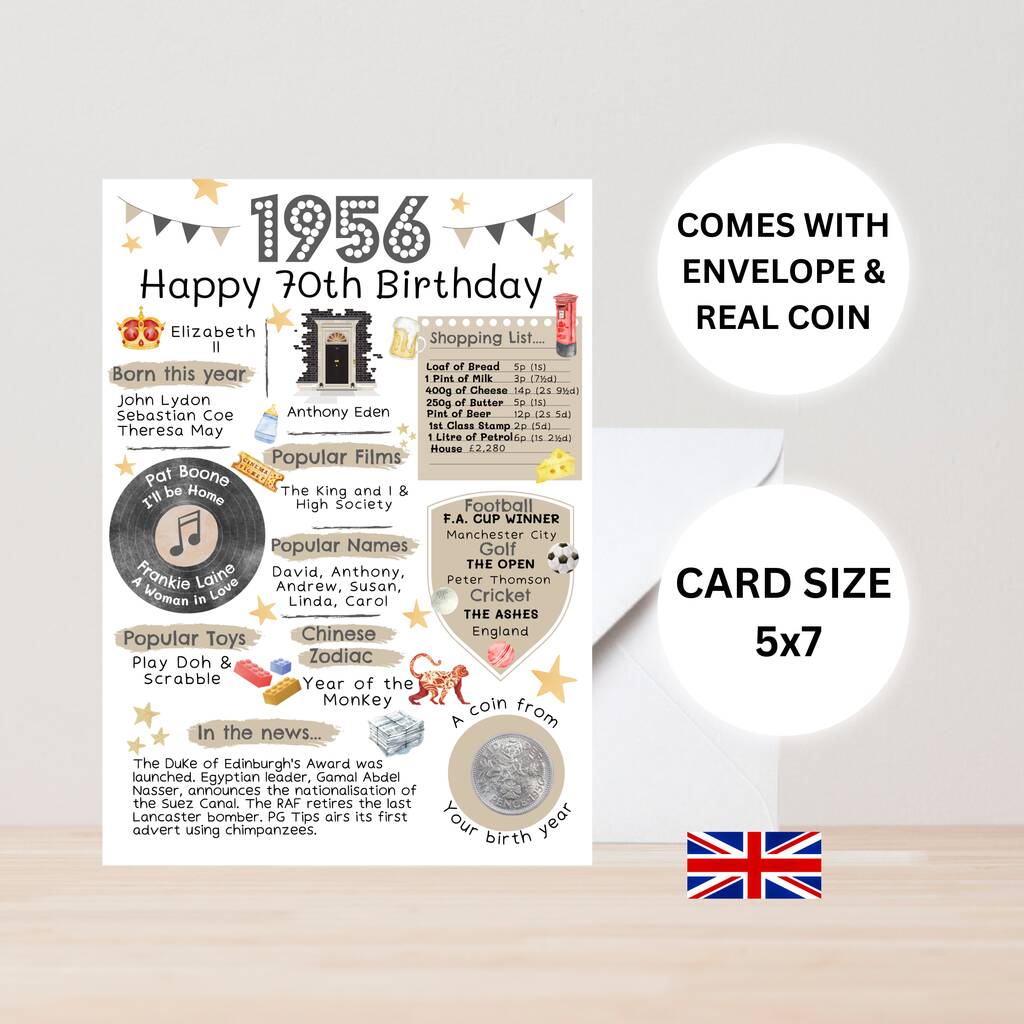 A 70th Birthday Card which includes a genuine coin from the birth year