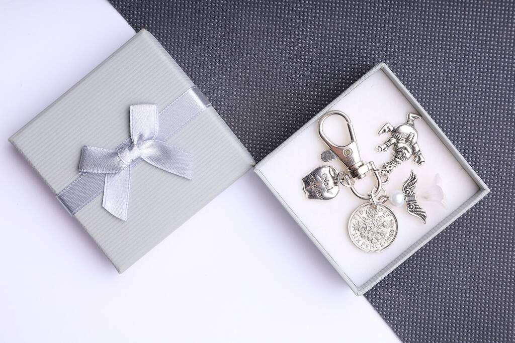 Teacher Lucky Sixpence Christmas Charm Keyring