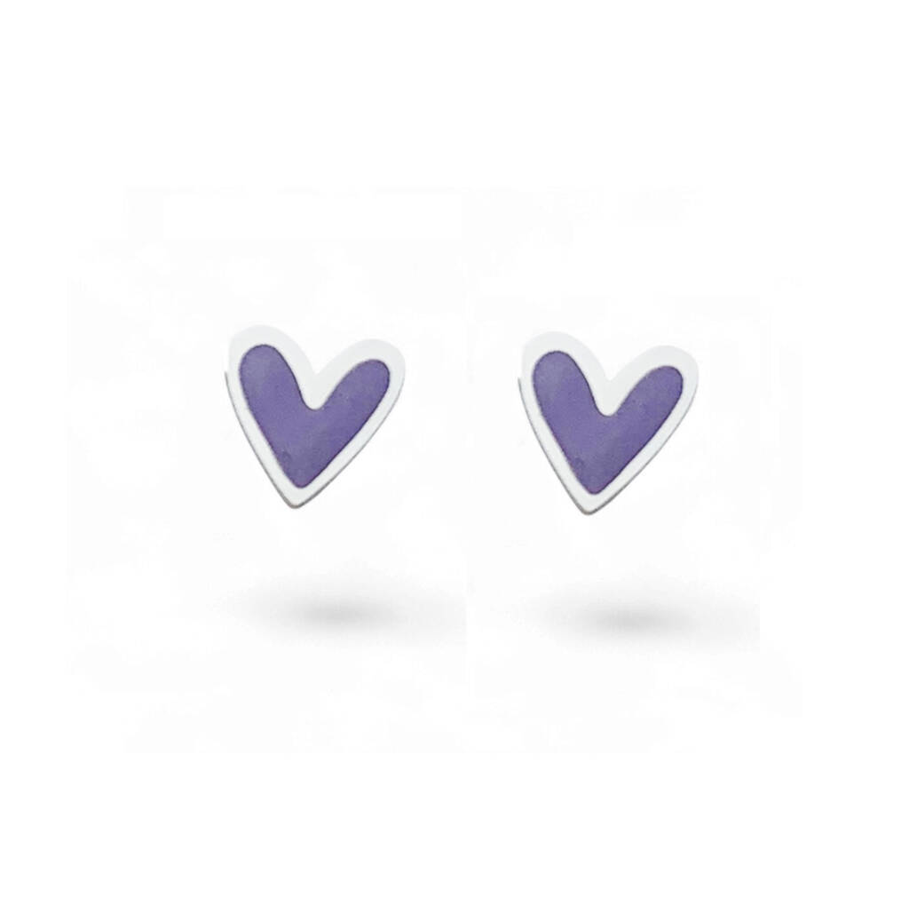 Mini Heart Studs With Amethyst Enamel, 1 of 3