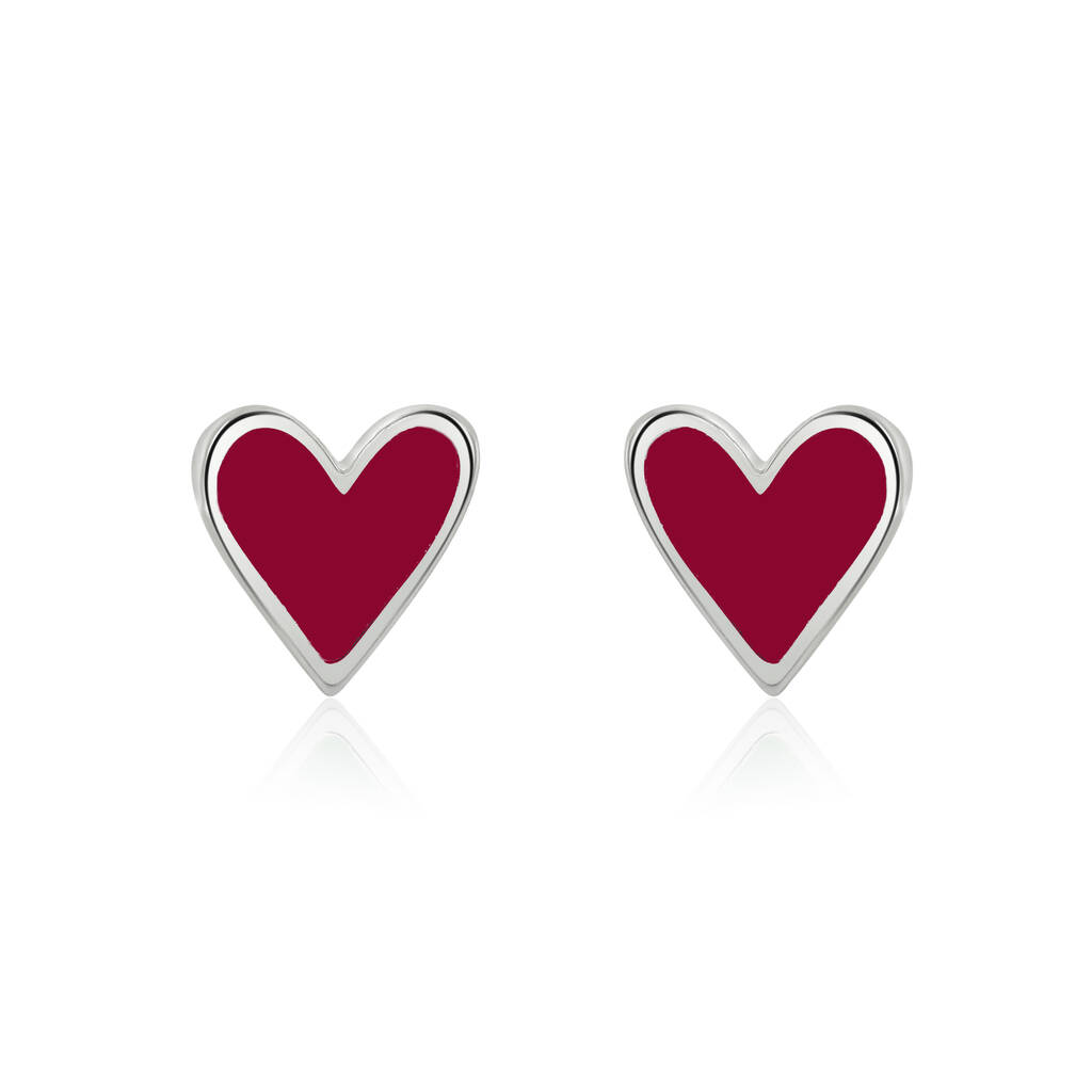 • Mini Heart Studs With Raspberry Red Enamel, thumbnail 1 of 3
