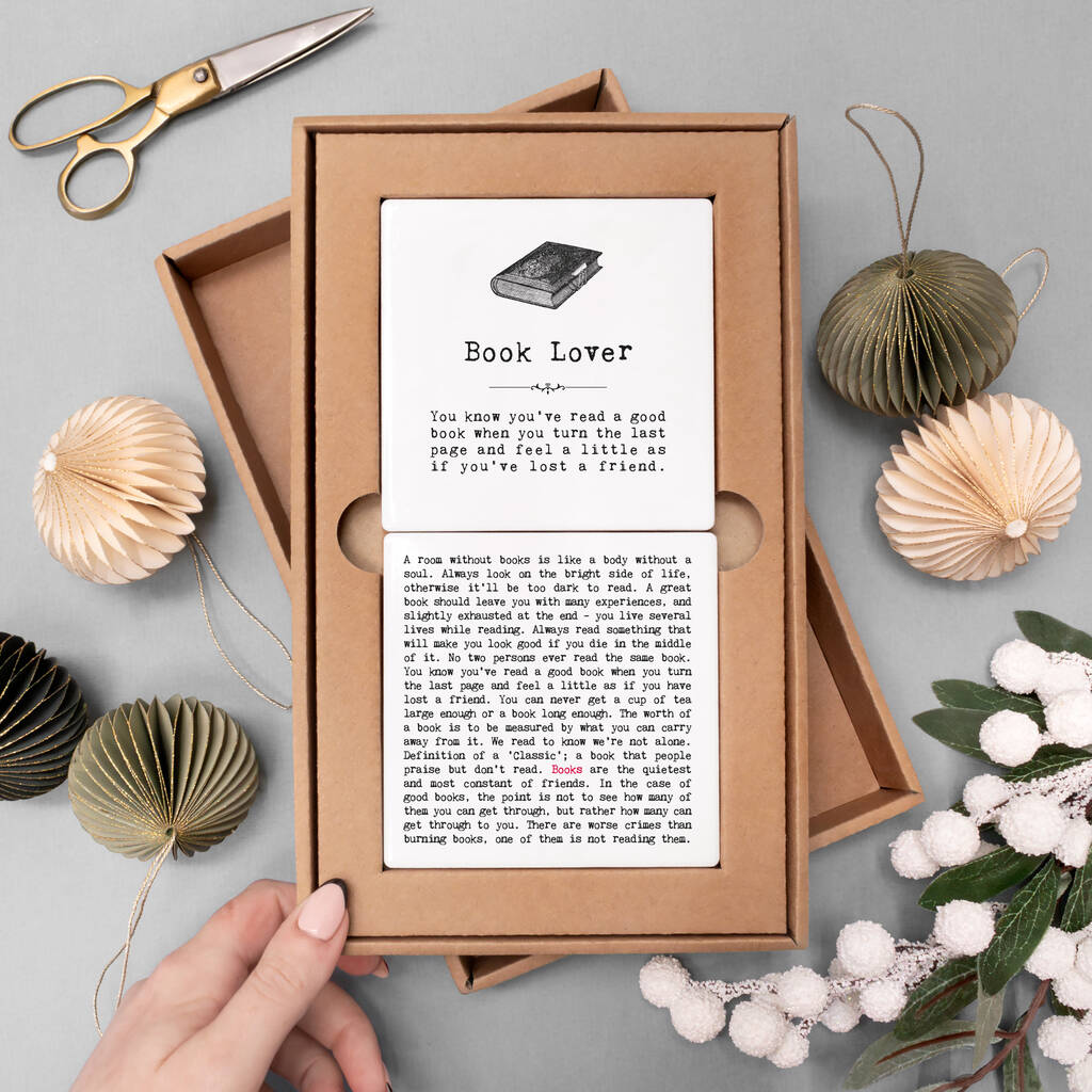 • Set Of Two Ceramic Book Coasters In Gift Box, thumbnail 8 of 11