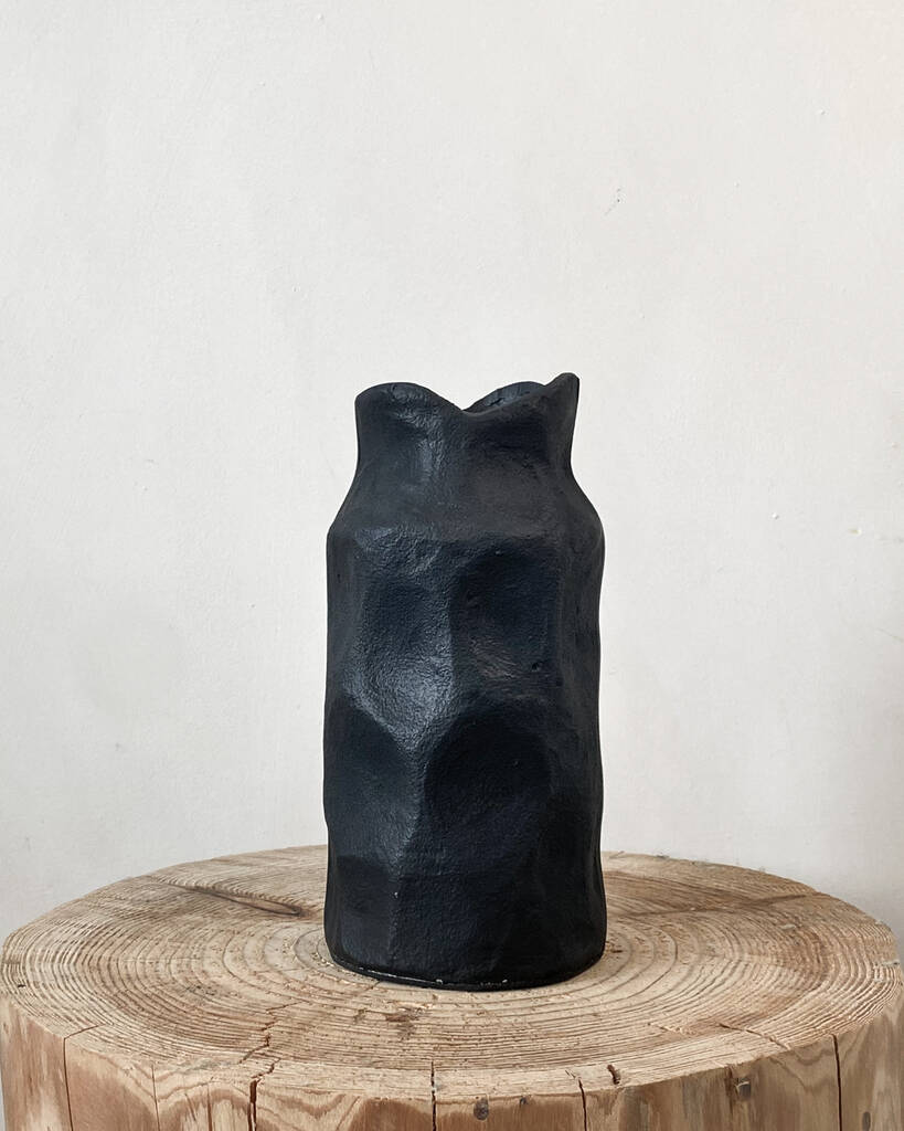 At its heart is a striking hammered aluminium vase, finished in sleek matte black. Its tactile, sculpted surface provides the perfect contrast to the soft, ethereal texture of natural pampas grasses, offering effortless, zero-maintenance style that endures season after season.