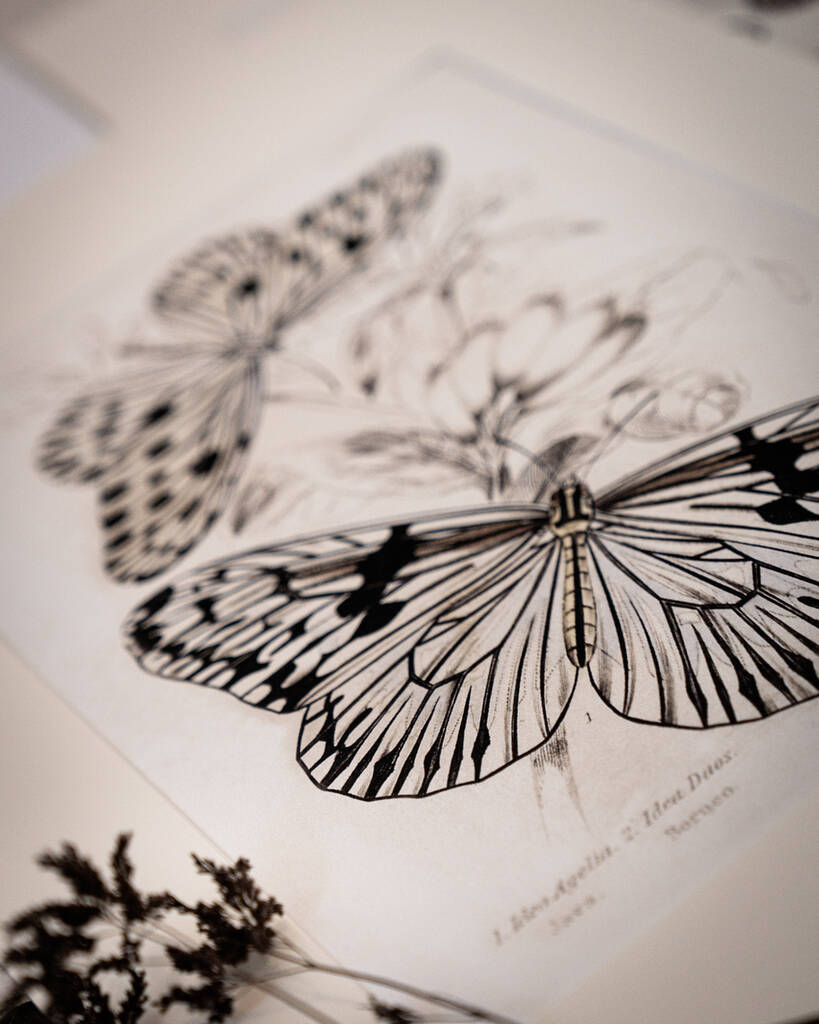 To complement this elegant display, the set includes a mounted A3 restored vintage butterfly giclée print, a heritage artwork brought beautifully to life through fine-art printing. Each piece is carefully mounted and ready to elevate any contemporary wall space.