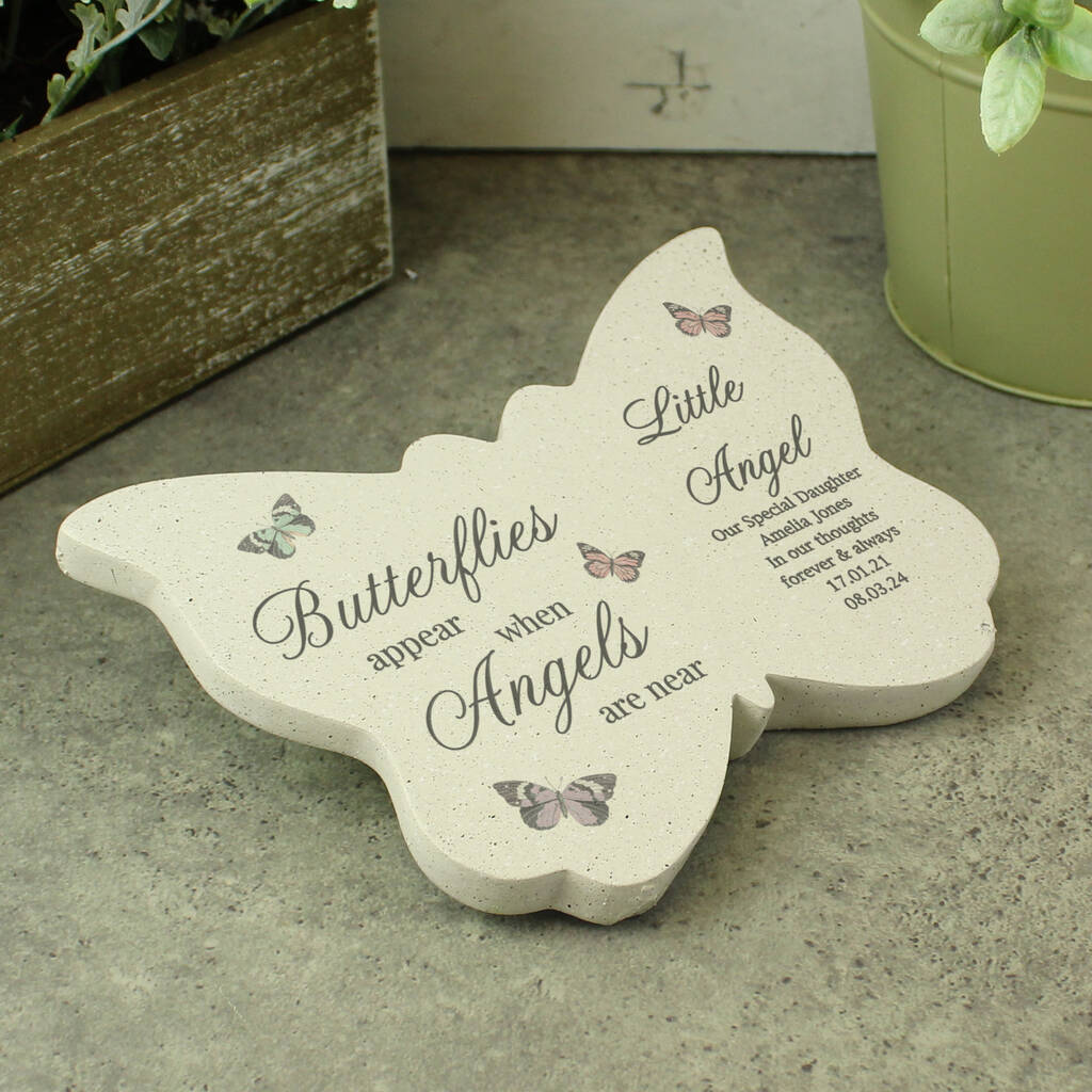 Please note, all text is case sensitive and will appear as entered. Please refrain from using fixed upper case as this could make the script font difficult to read.The following text is fixed and cannot be amended."Butterflies appear when Angels are near"Please note that each ornament is crafted from a natural resin material. This may result in blemishes appearing on the area of personalisation. It may feature small imperfections, all of which add to its own unique character!