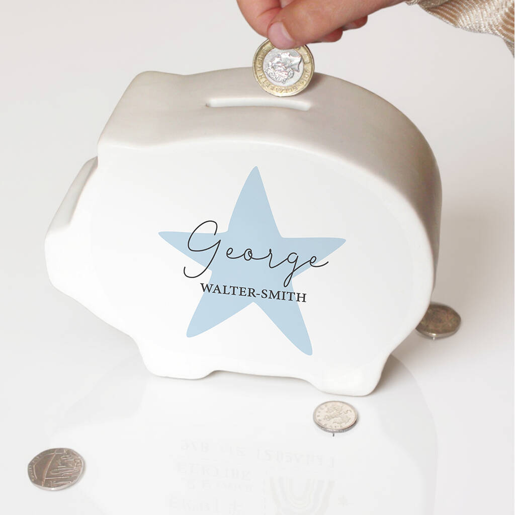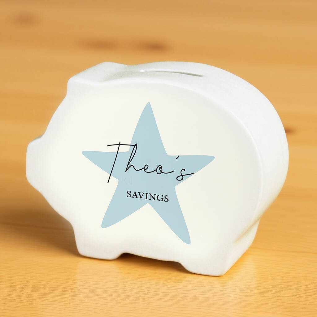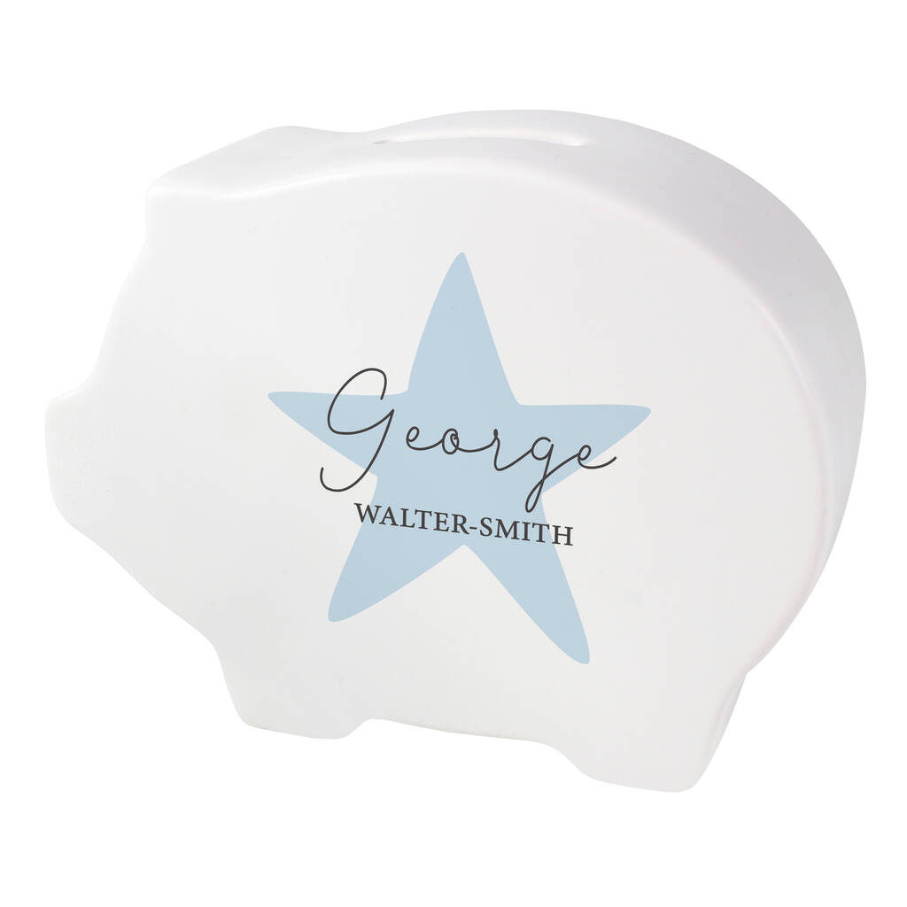 Personalised Blue Star Piggy Bank Personalised Gift