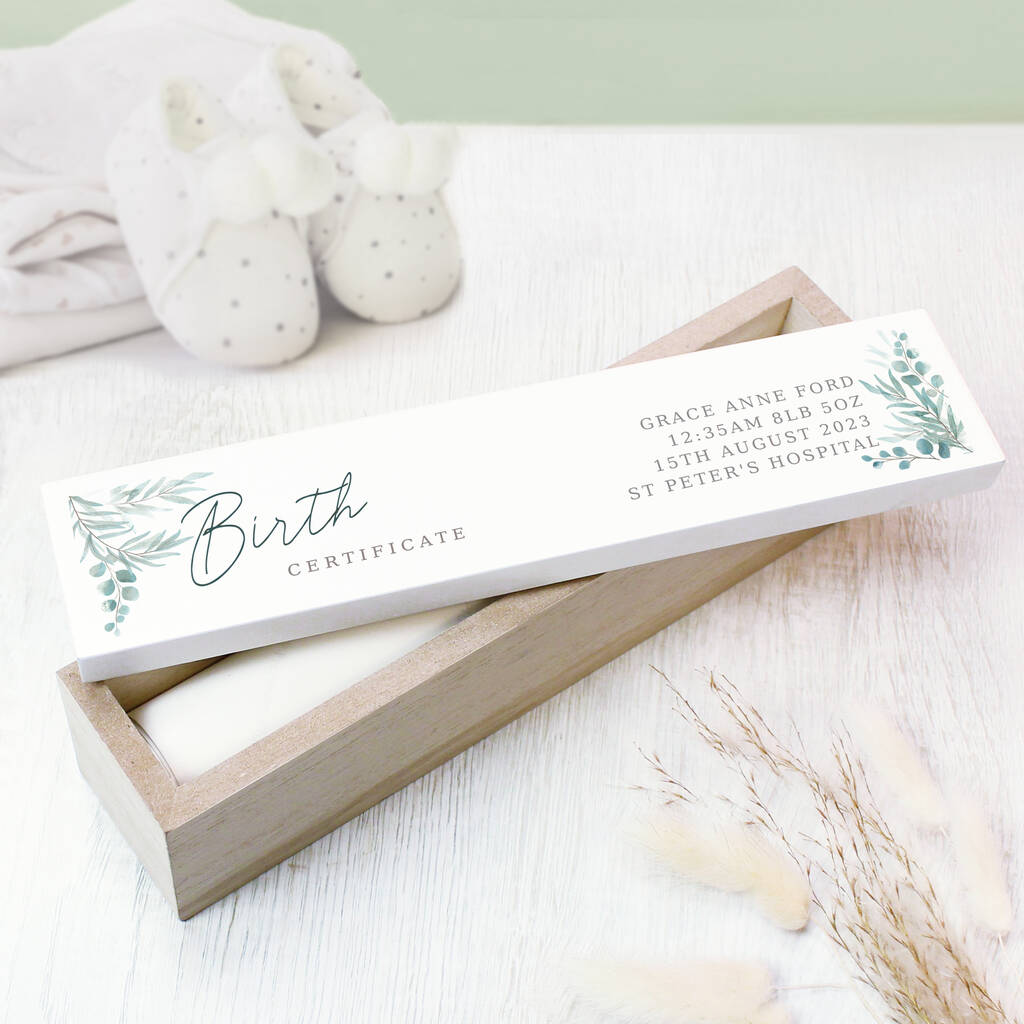 Personalised Botanical Wooden Certificate Box