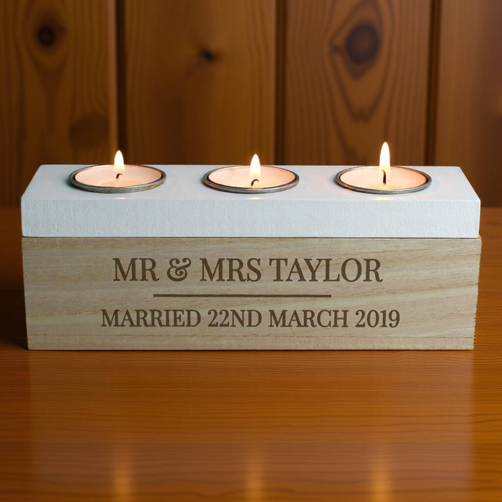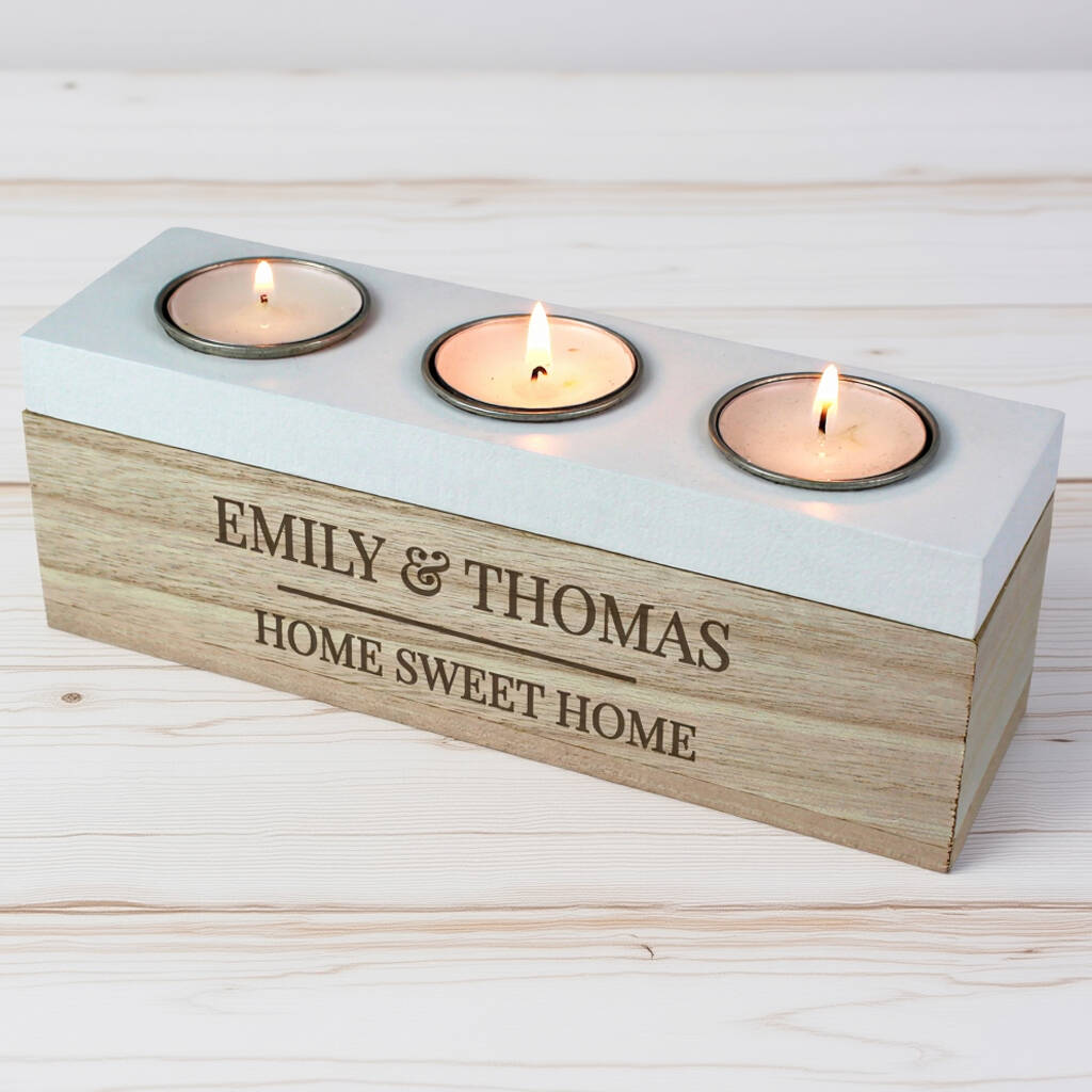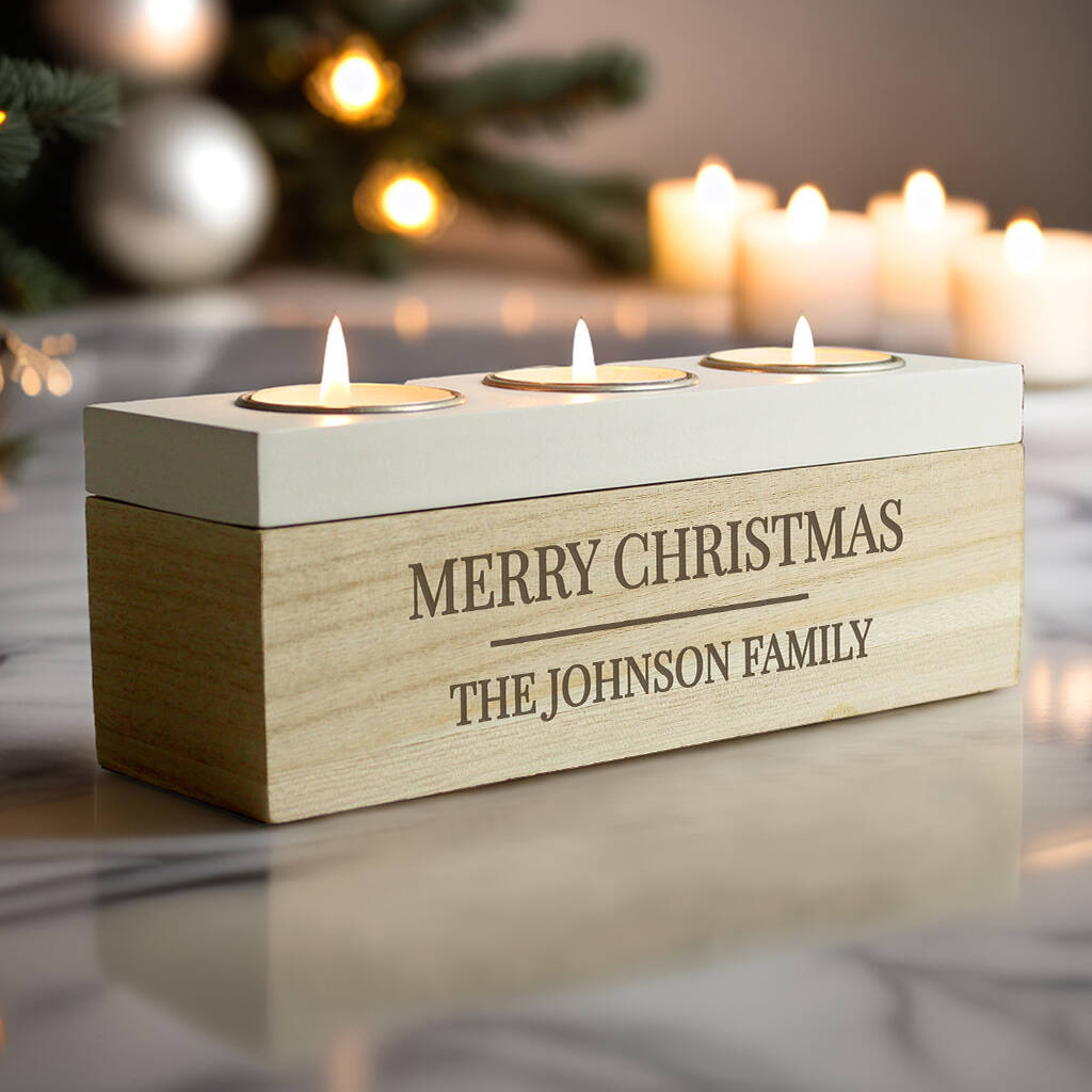 Personalised Classic Triple Tea Light Box Tealight Hold