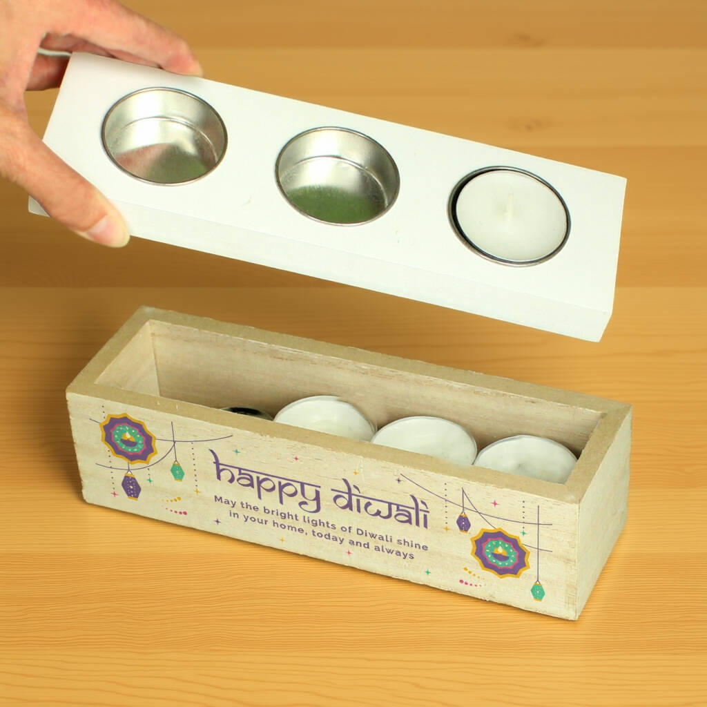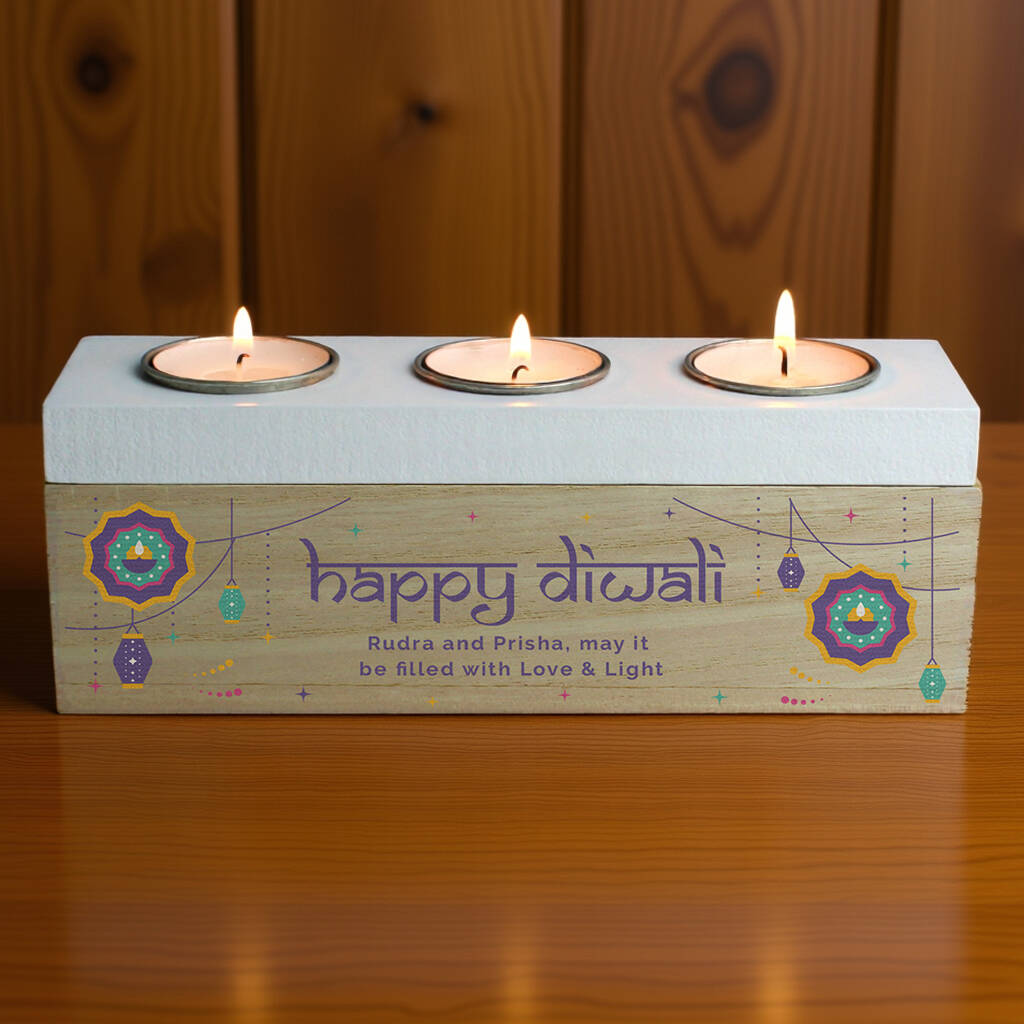 Personalised Diwali Triple Tealight Box Tealight Holder