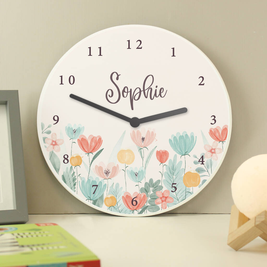 • Personalised Floral Wooden Clock For Children, thumbnail 1 of 4