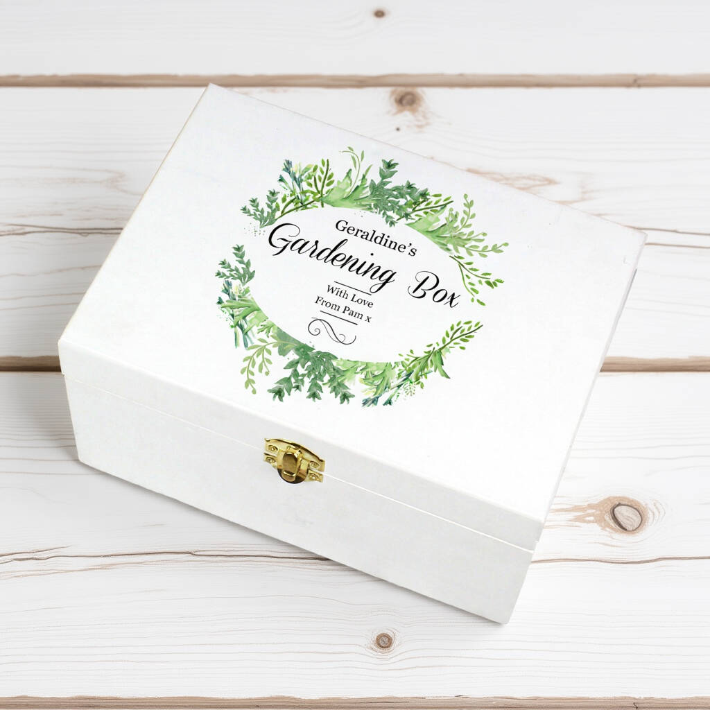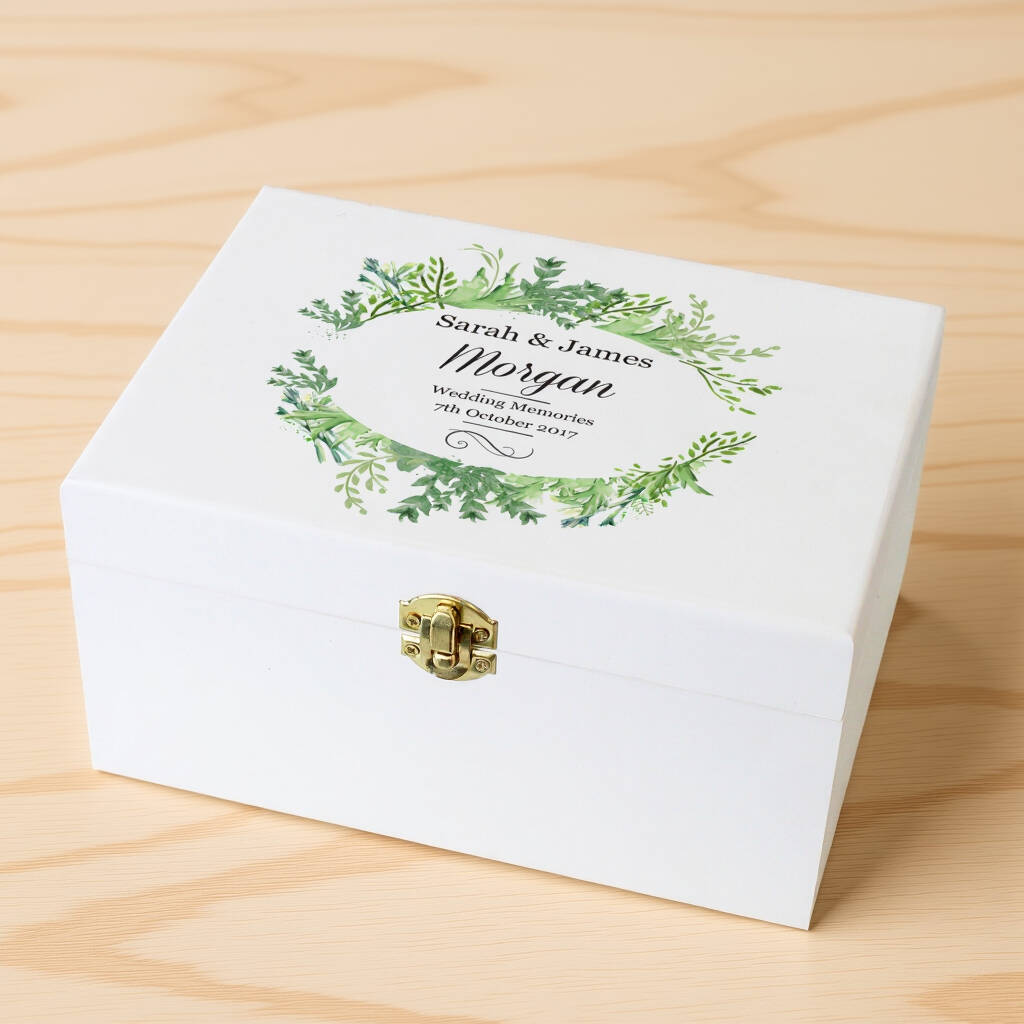 Personalised Fresh Botanical White Wooden Keepsake Box