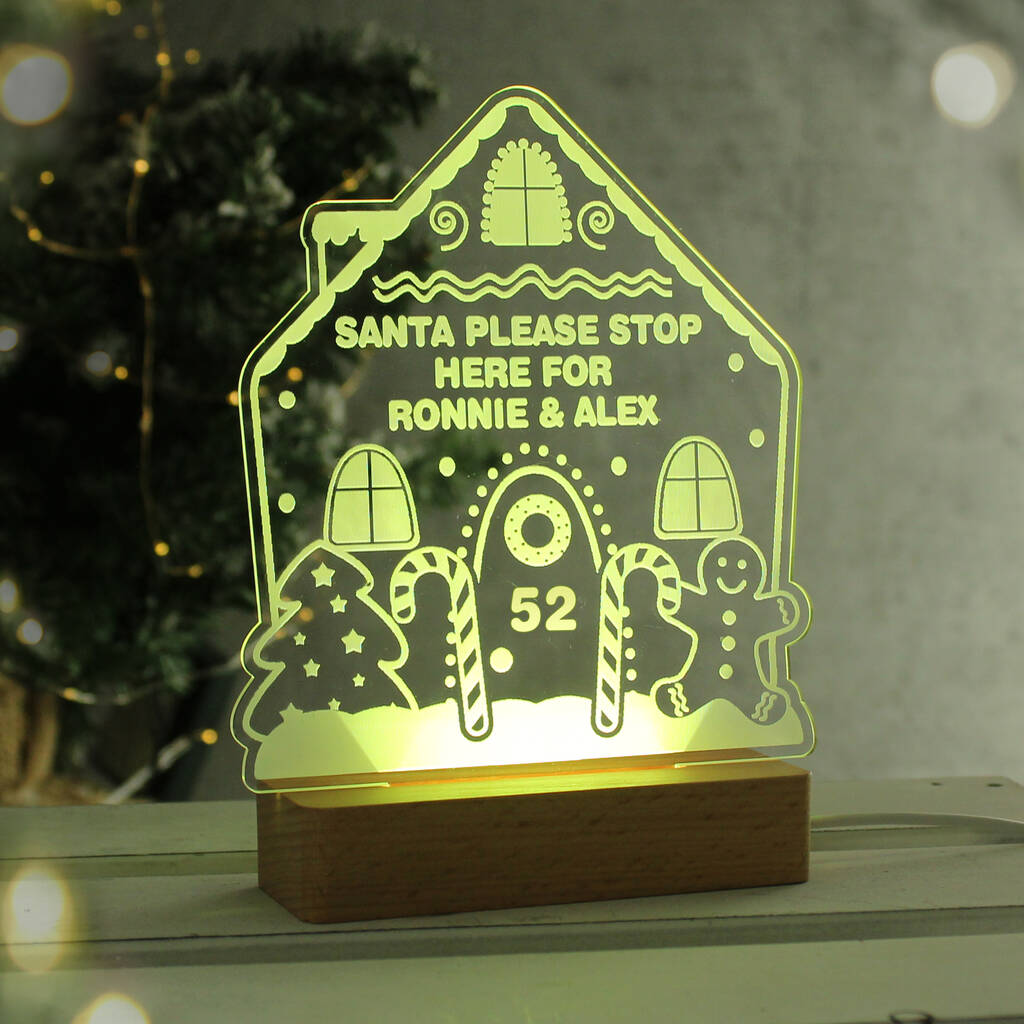 Bring festive charm home with this personalised gingerbread house LED light—a delightful colour-changing Christmas decoration ideal for seasonal gifting.