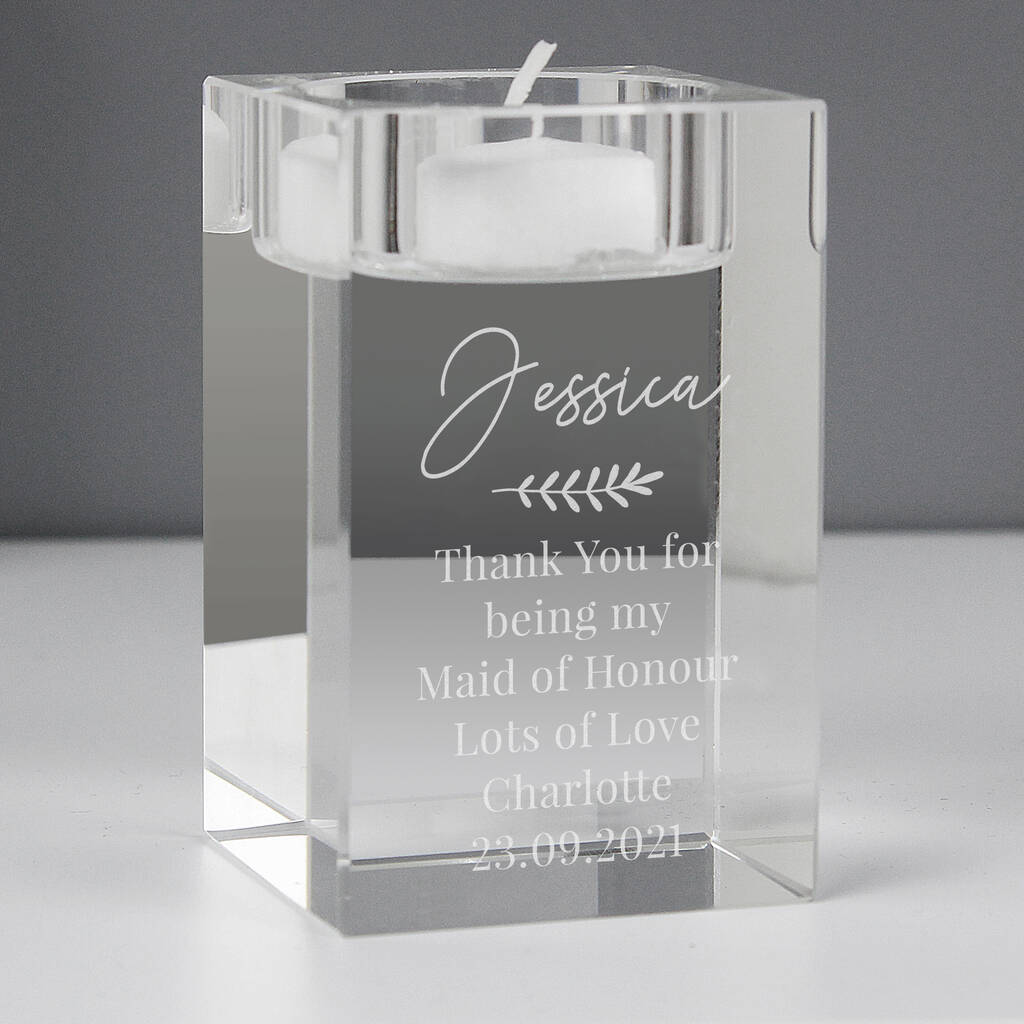 • Personalised Leaf Glass Tea Light Holder, thumbnail 1 of 8