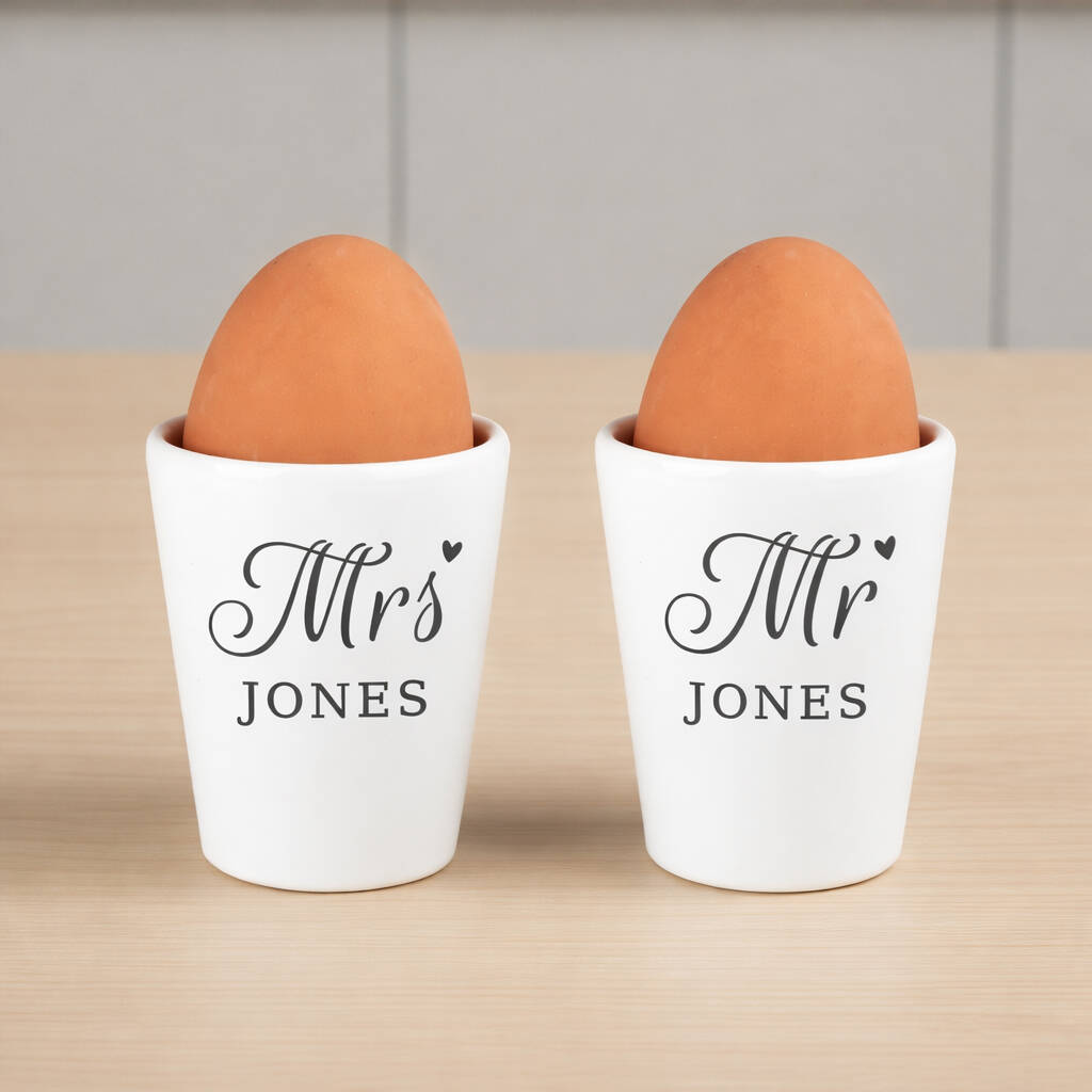 Personalised Mr And Mrs Ceramic Egg Cup Set