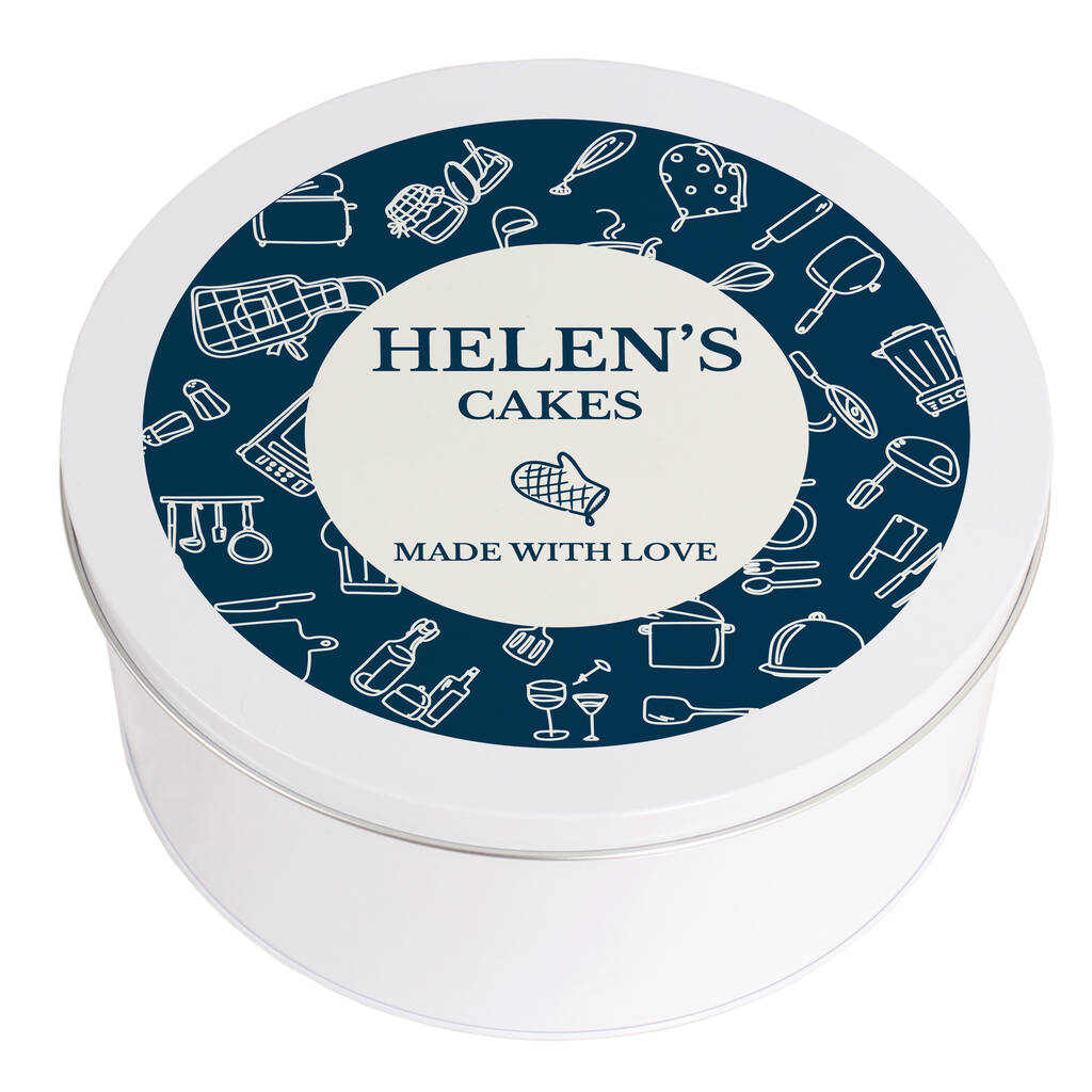 Personalised Navy Kitchen Design Cake Tin, 1 of 5