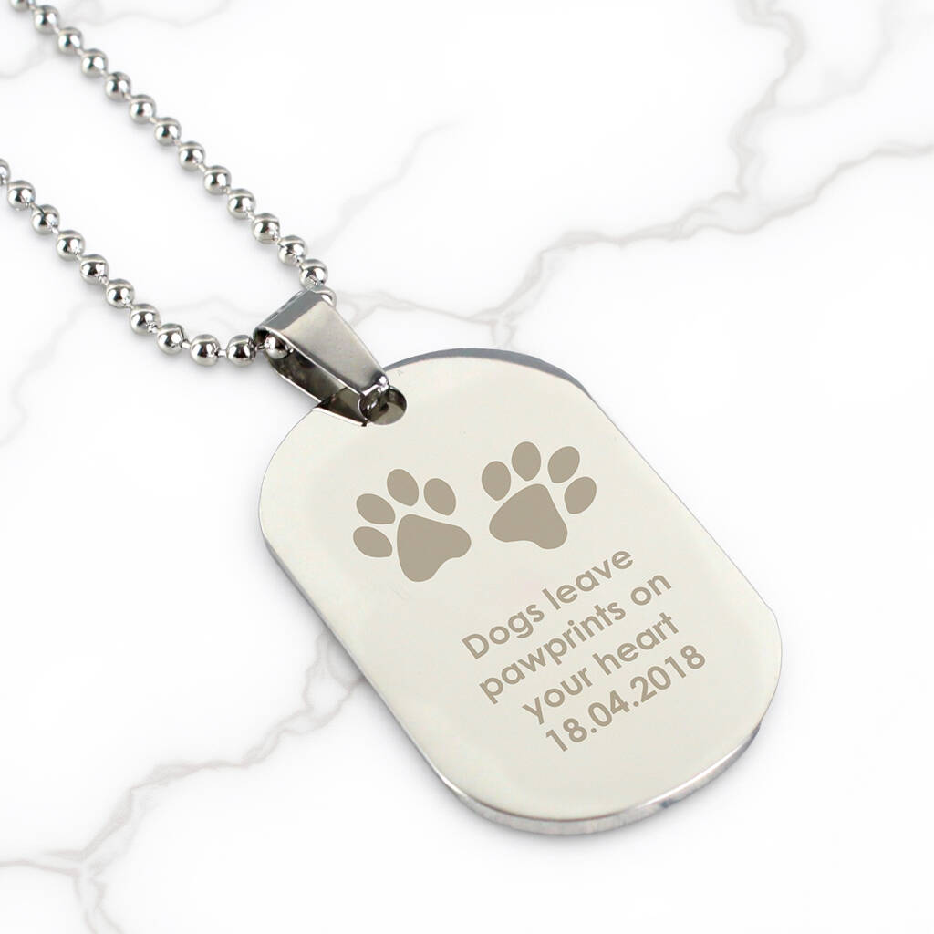Personalised Paw Prints Stainless Steel Dog Tag Necklace