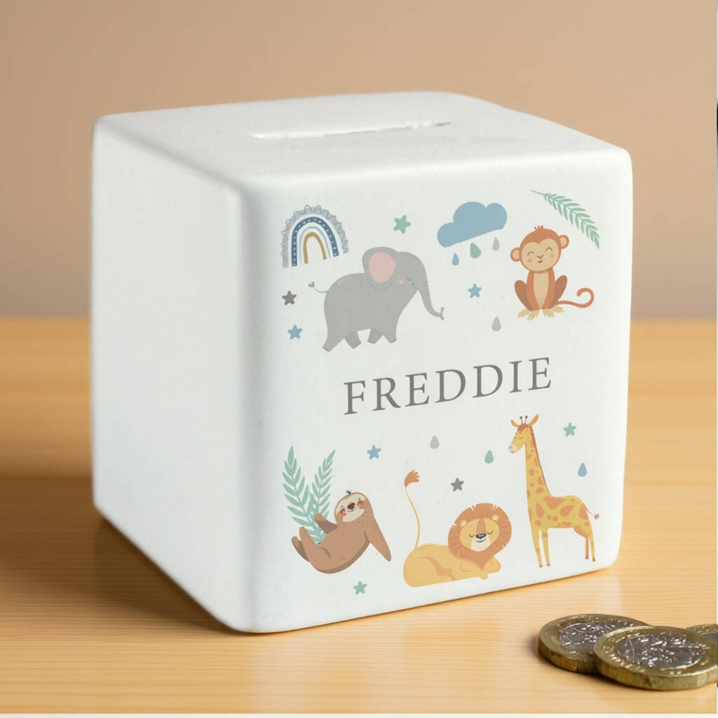 • Personalised Safari Animals Money Box, thumbnail 1 of 5