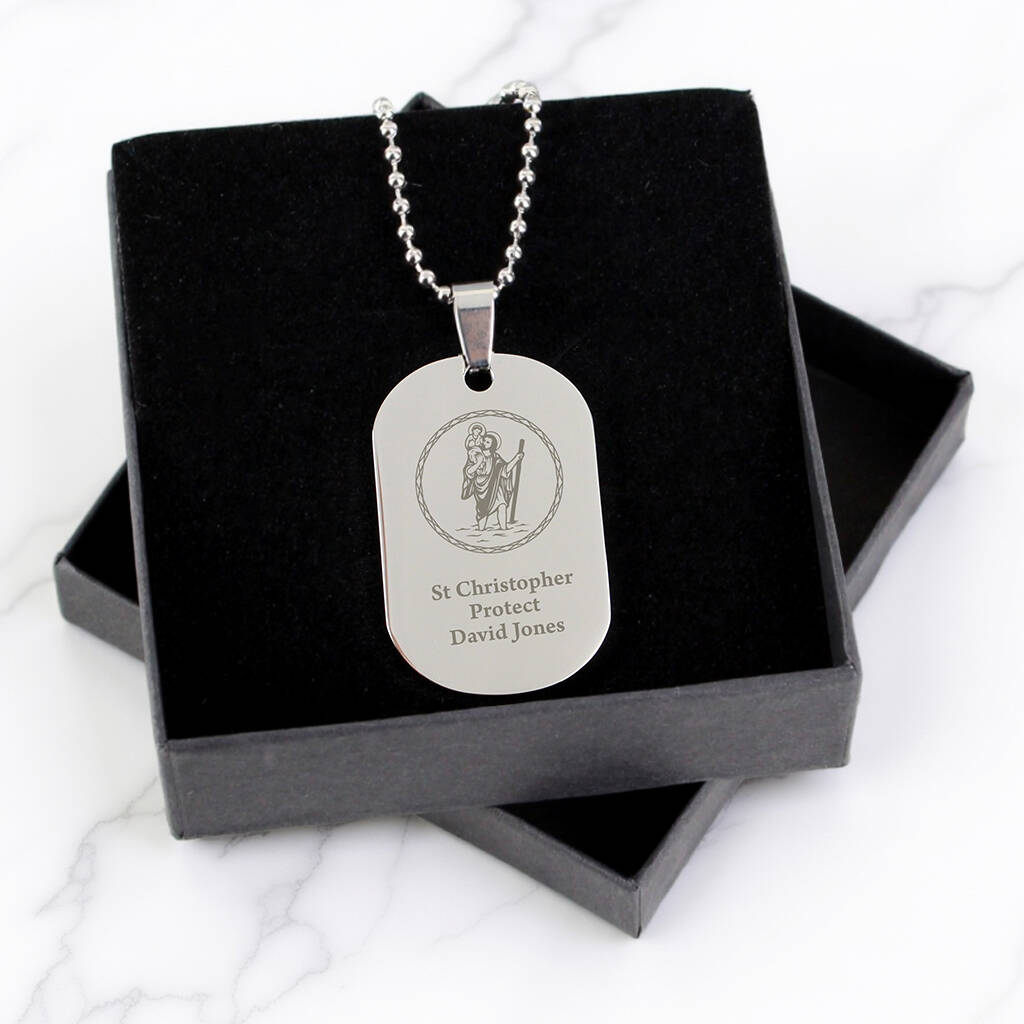 Personalised St Christopher Stainless Steel Dog Tag Necklace