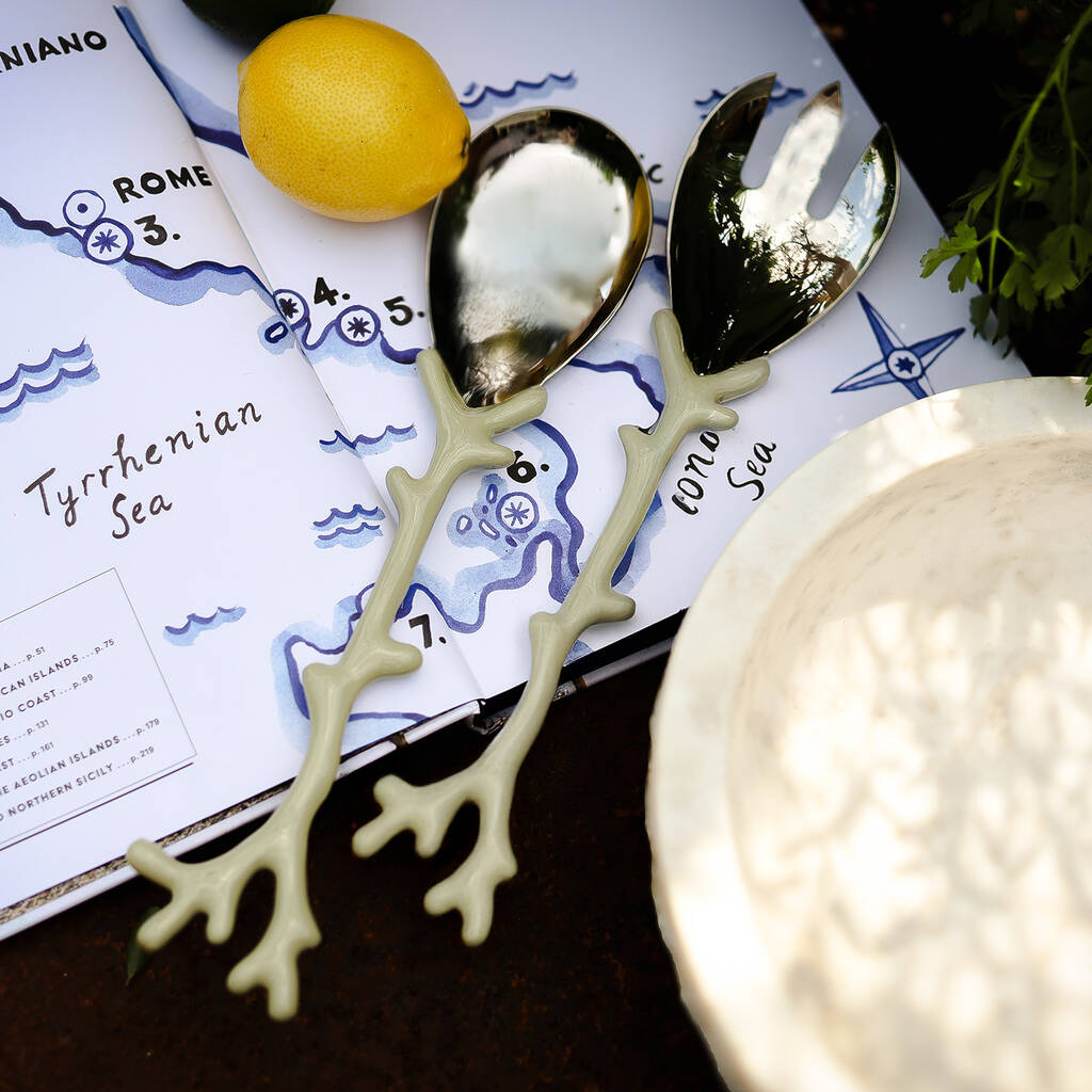 Set Of Sage Coral Salad Servers