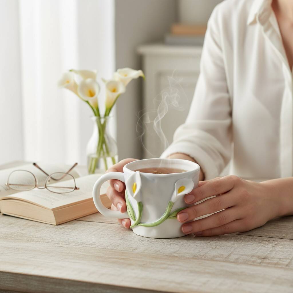 Pastel Blue Floral 3D Calla Lily Ceramic Mug