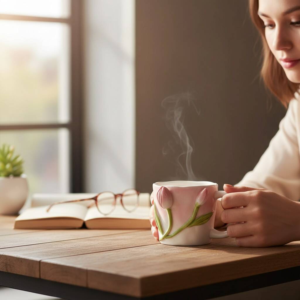 Pastel Pink Floral 3D Tulip Ceramic Mug