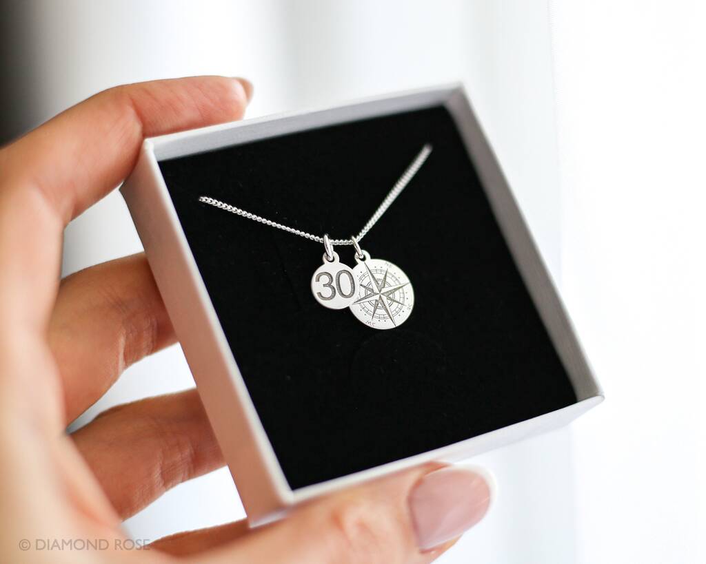 30th Birthday Gift For Her, Compass Necklace In Sterling Silver