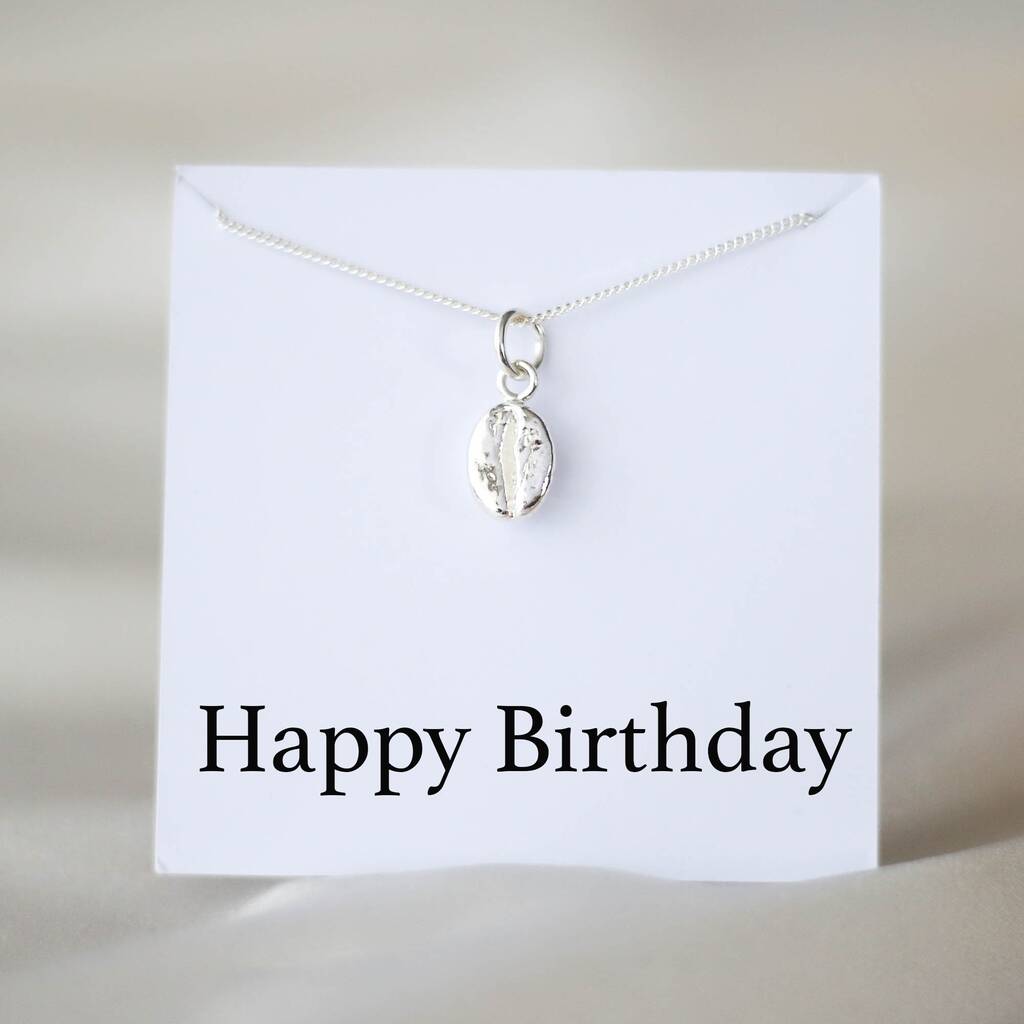 A meaningful silver coffee bean necklace symbolising warmth, energy, and everyday moments shared – a thoughtful gift for the coffee lover in your life.