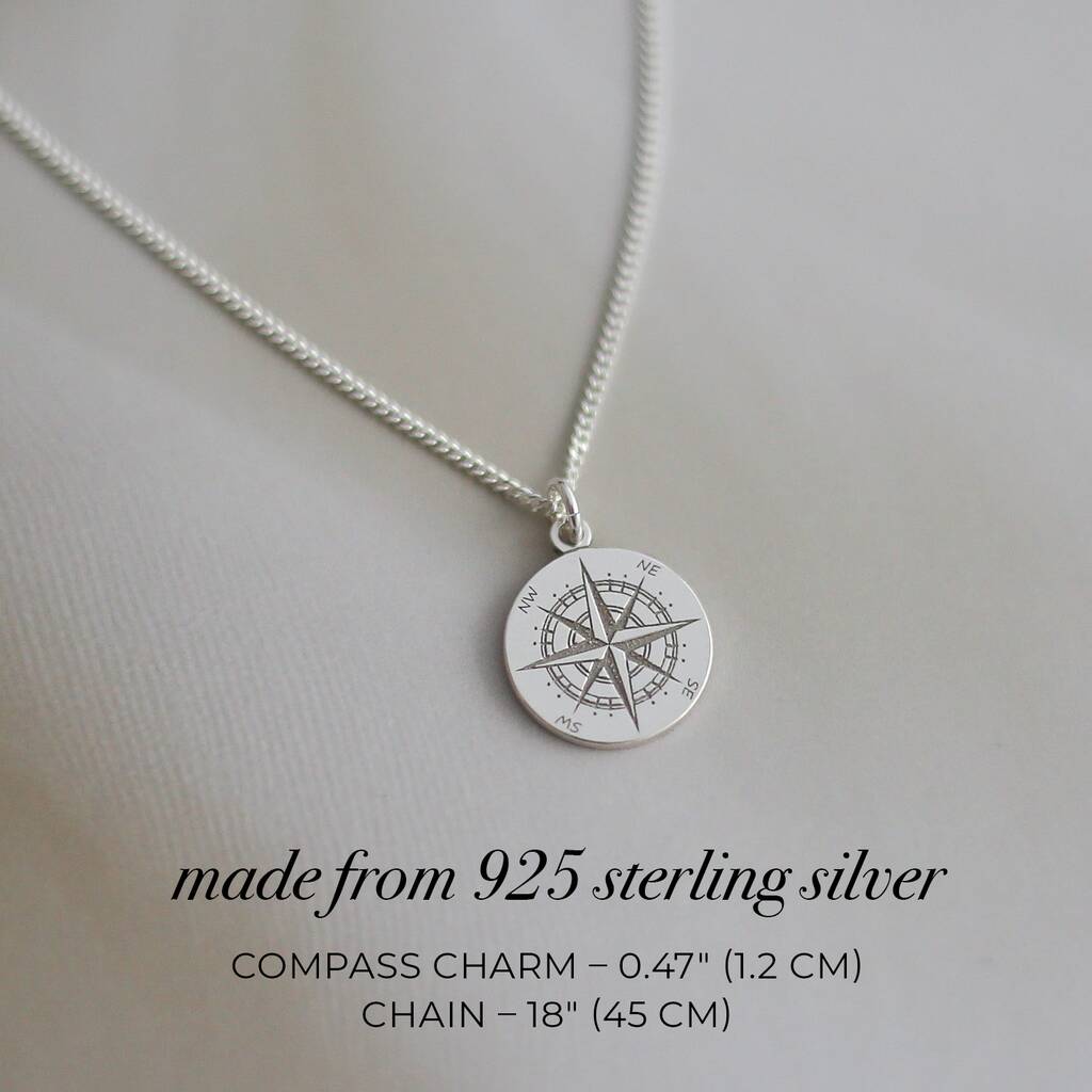 A delicate compass necklace in sterling silver or 24k gold vermeil – a timeless symbol of guidance, courage, and finding your own direction.