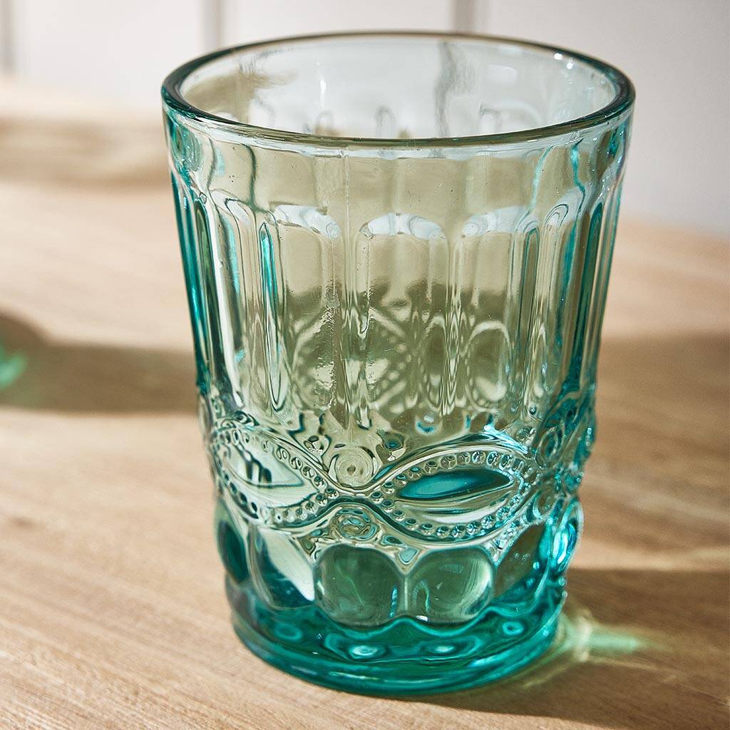 Aurielle Embossed Turquoise Tumbler Glass