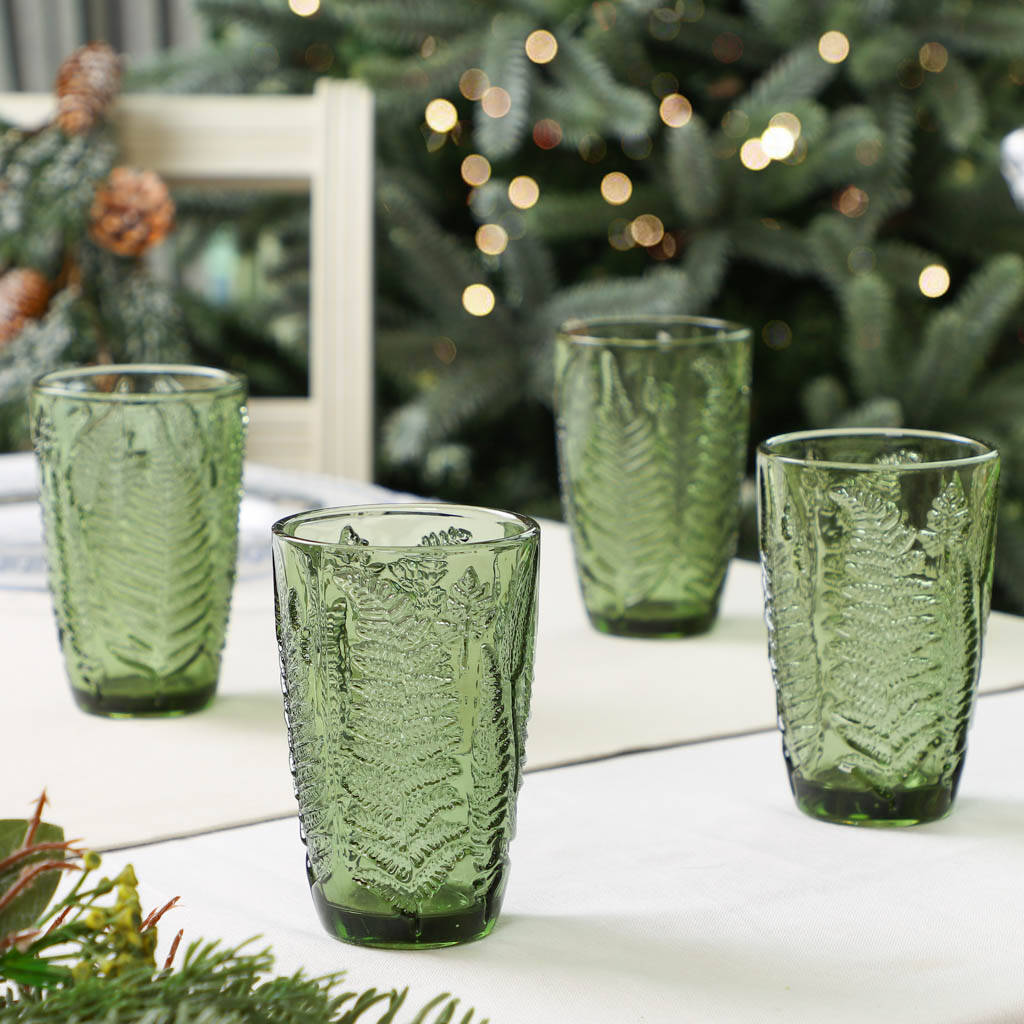 Completely dishwasher safe, these glass hiball tumblers boast a hand-pressed embossed leaf design and a jewel-bright green colour that's perfectly suited to any occasion.