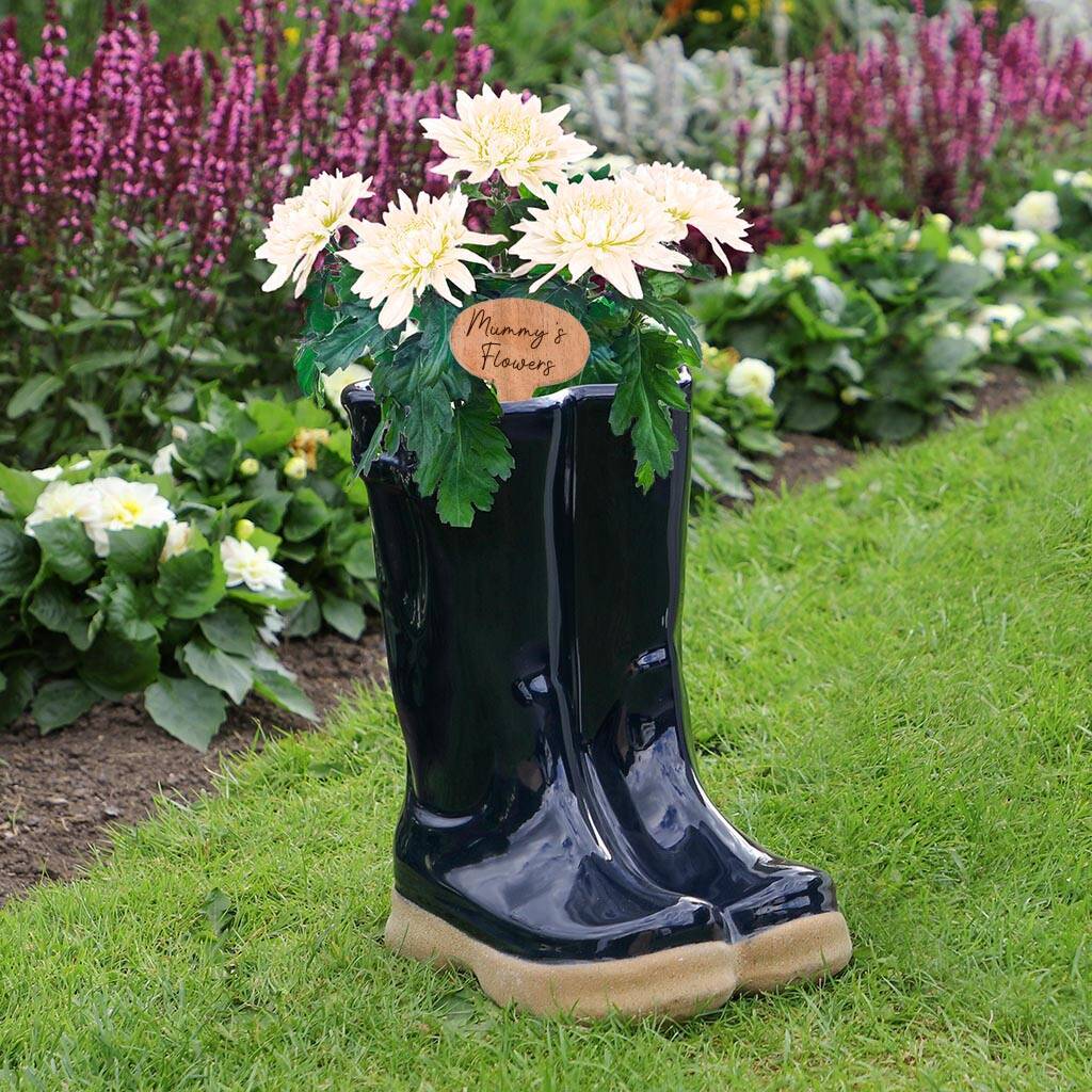 Painted a dark blue colour, our ceramic plant pot looks just like a pair of wellies, making a lovely gift for gardeners.