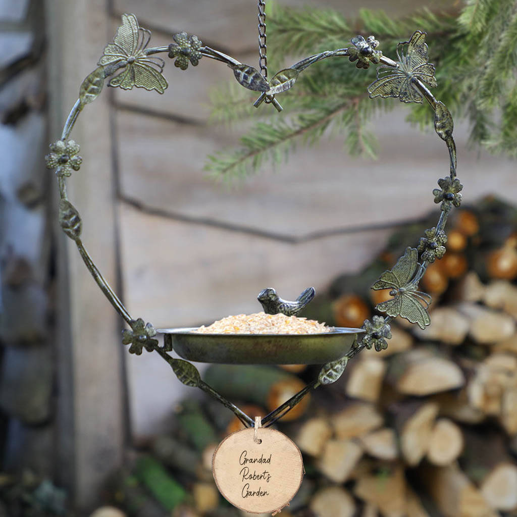 Complete with a small tray at the base of the love heart shaped frame that's perfect for filling with bird seed or leaving to collect rainwater. The heart bird bath features a linked chain and hook to the top, to hang from a bracket or branch.