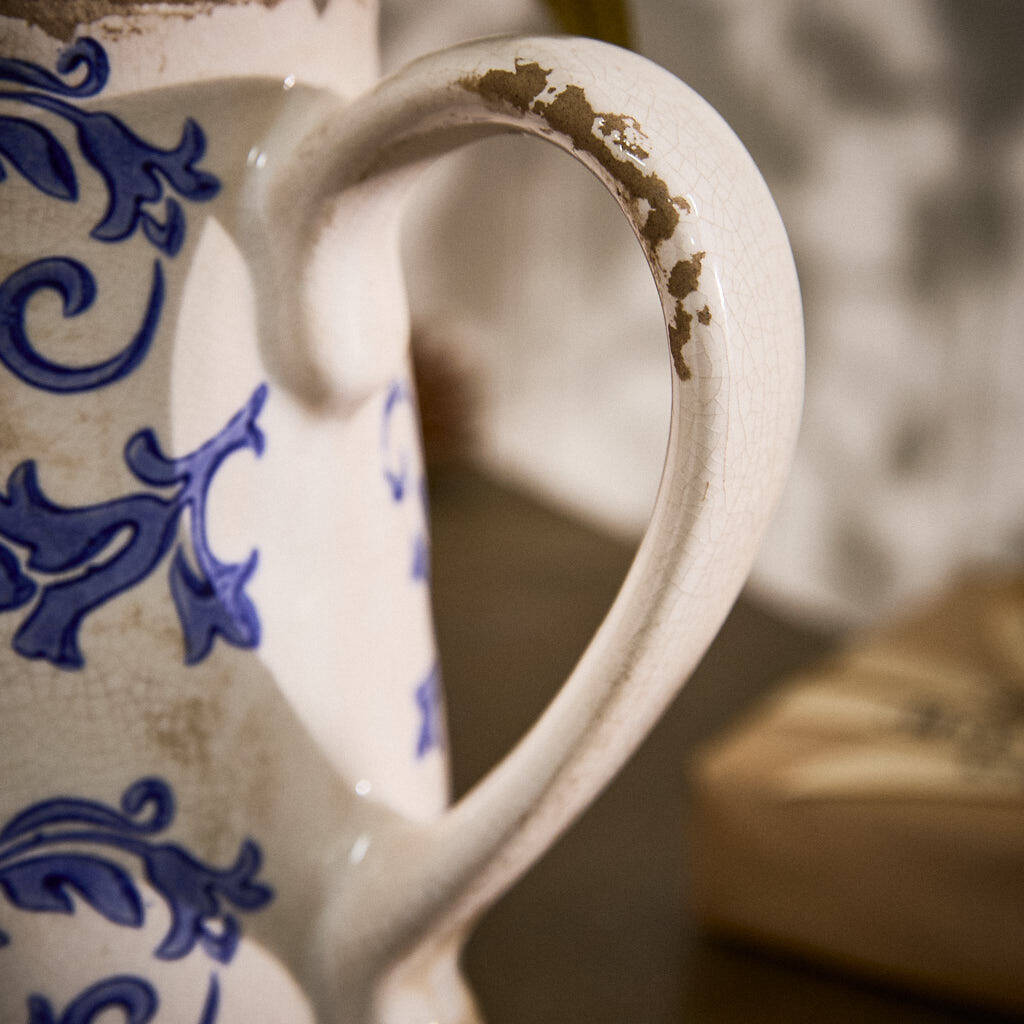 Crafted from high quality ceramic, this decorative jug features a deliberately distressed finish, giving it a vintage style charm that complements a variety of home décor styles.